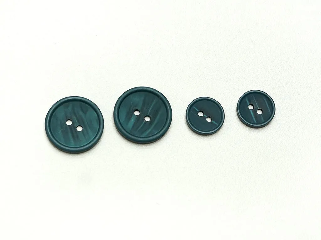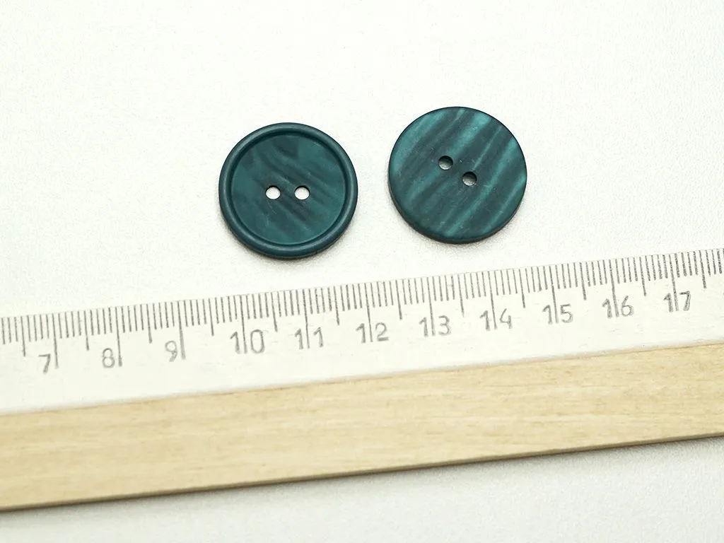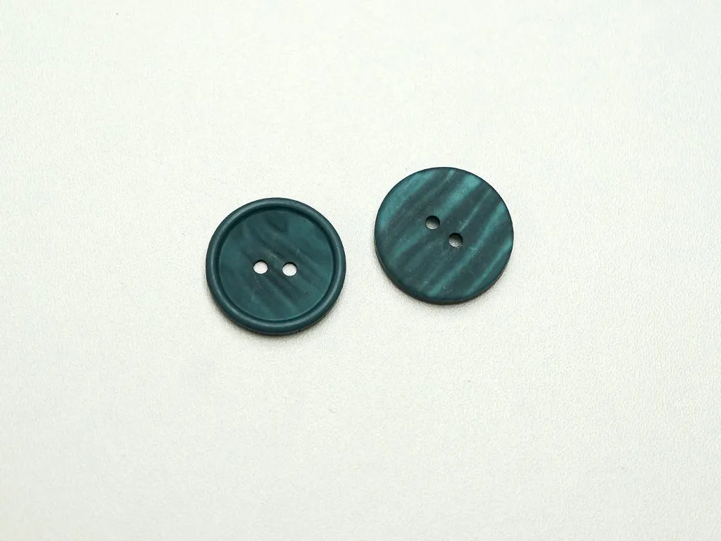 Пуговица пластмассовая, два прокола, малахитового цвета, диаметр 23 мм