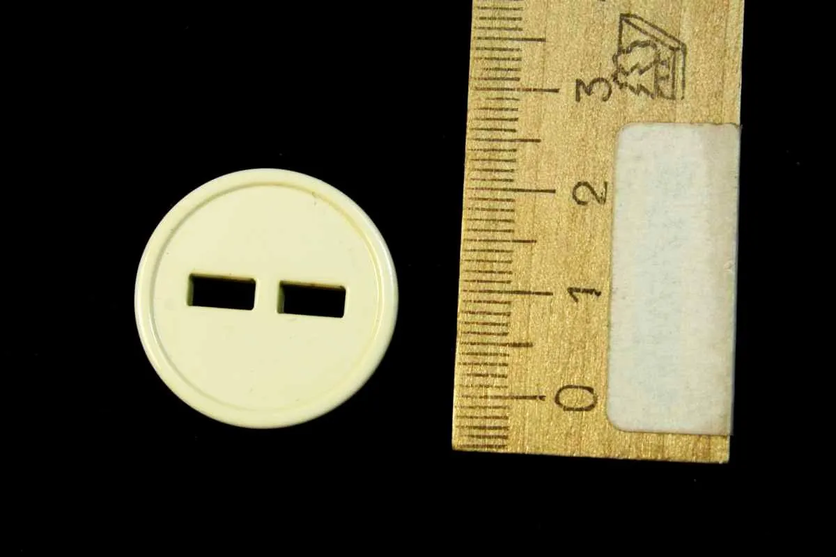 Пуговица пластмассовая, два прокола, молочного цвета, диаметр 25 мм