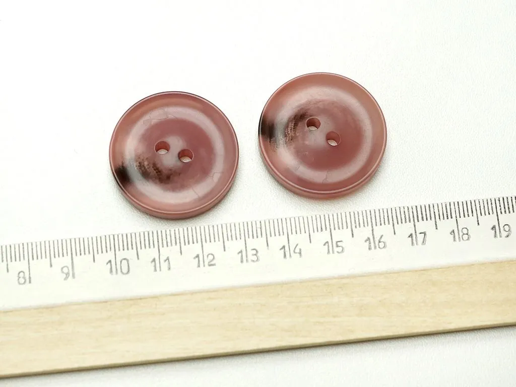 Пуговица пластмассовая, два прокола, розовый меланж, диаметр 30 мм