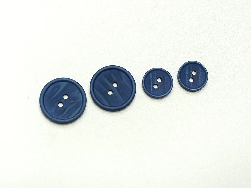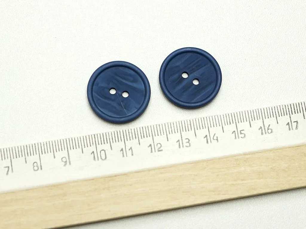 Пуговица пластмассовая, два прокола, синего цвета, диаметр 23 мм