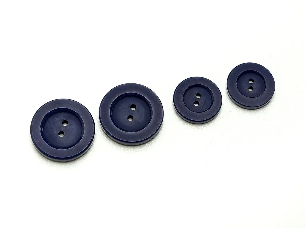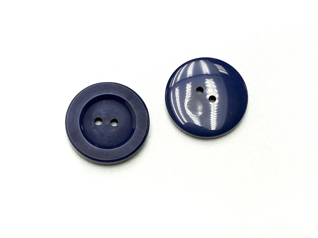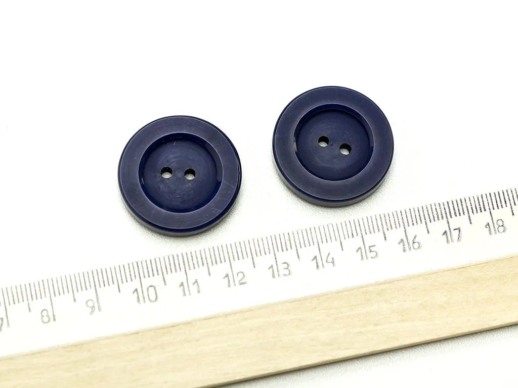 Пуговица пластмассовая, два прокола, синего цвета, диаметр 28 мм