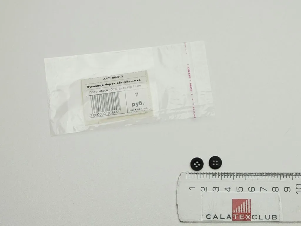 Пуговица пластмассовая костюмная, 4 прокола,абсолютно чёрный матовый, диаметр 11 ммфото (фото 2)