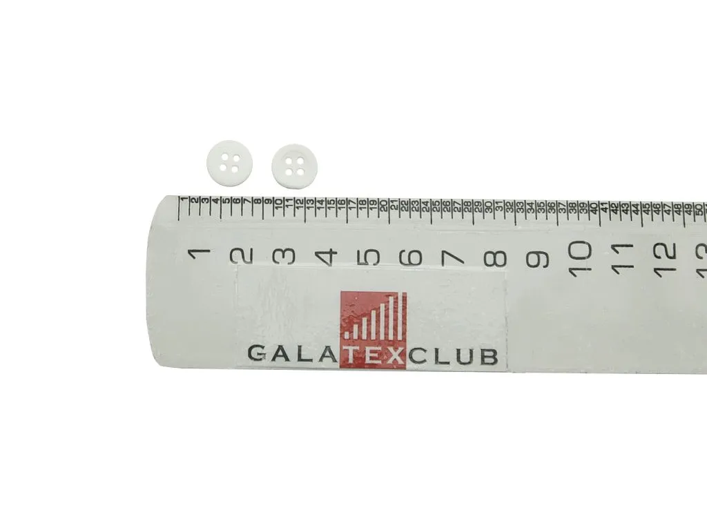 Пуговица пластмассовая костюмная, 4 прокола,белый матовый, диаметр 11 мм
