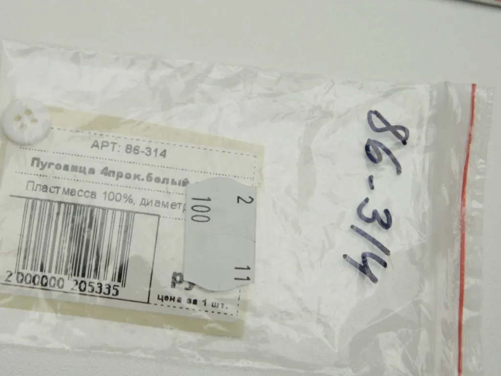 Пуговица пластмассовая костюмная, 4 прокола,белый матовый, диаметр 11 ммфото (фото 3)
