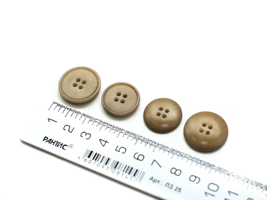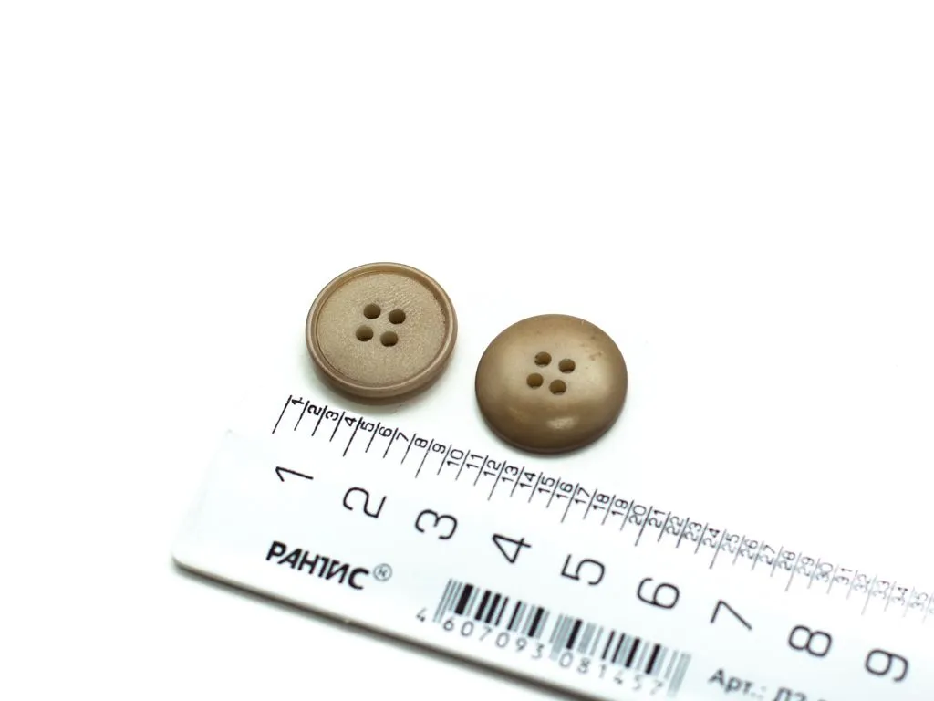 Пуговица пластмассовая, костюмная, 4 прокола, бежевая, матовая, диаметр 20 мм