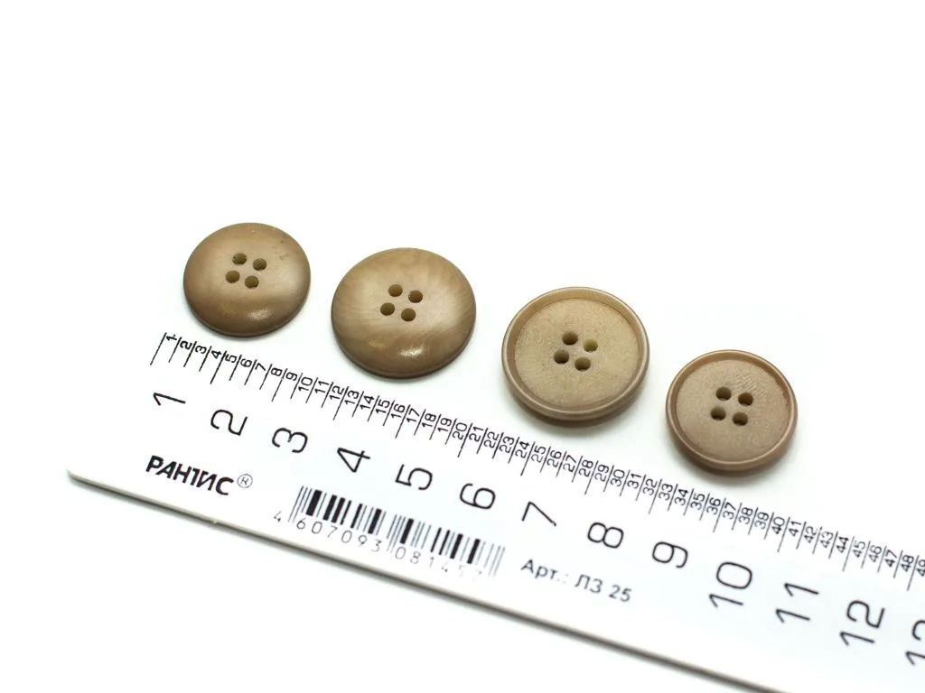 Пуговица пластмассовая, костюмная, 4 прокола, бежевая, матовая, диаметр 22 мм