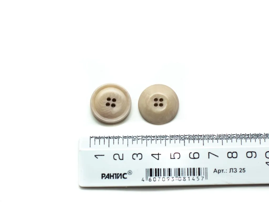 Пуговица пластмассовая, костюмная, 4 прокола, бежево-серая, диаметр 22 мм