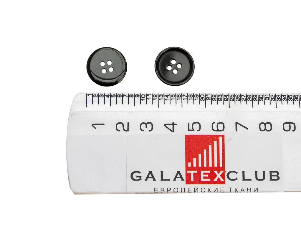 Пуговица пластмассовая костюмная, 4 прокола, глянцевая,чёрная, диаметр 18 мм