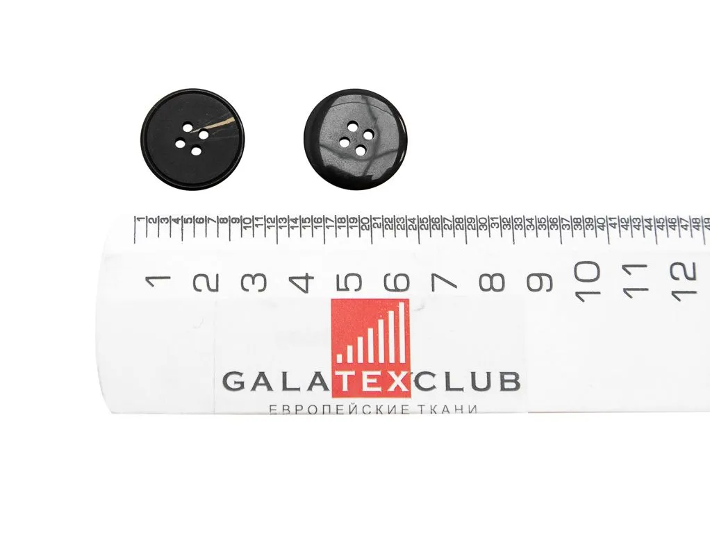 Пуговица пластмассовая костюмная, 4 прокола, матовая,чёрная с бежевым штрихом, диаметр 23 мм