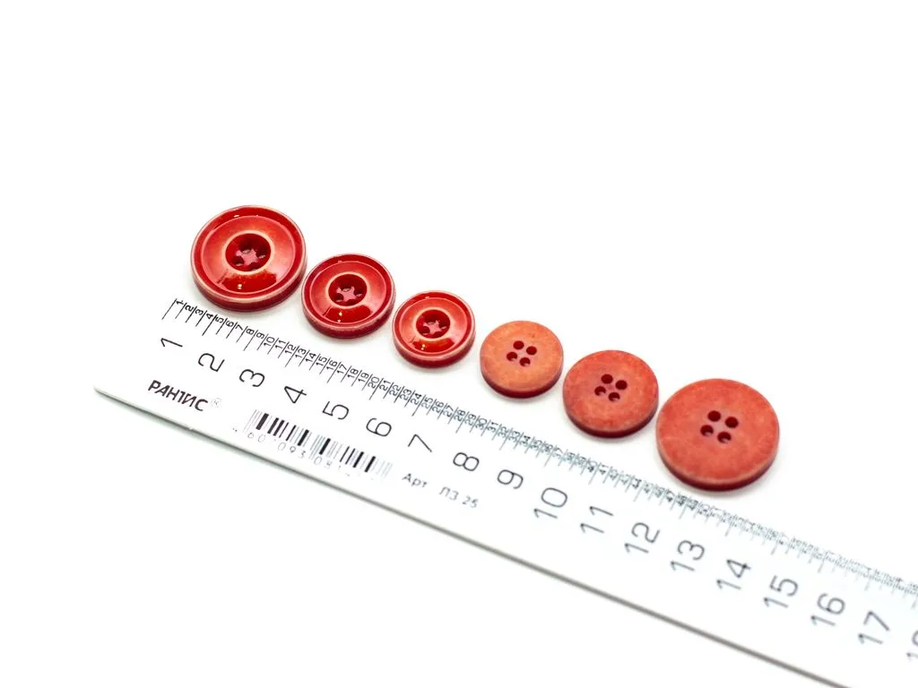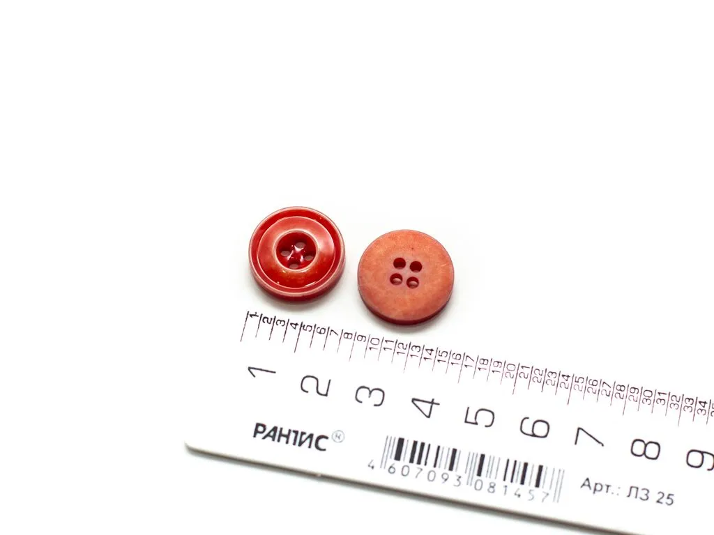 Пуговица пластмассовая, костюмная, 4 прокола, с глянцем, цвет красный джинсовый, диаметр 18 мм