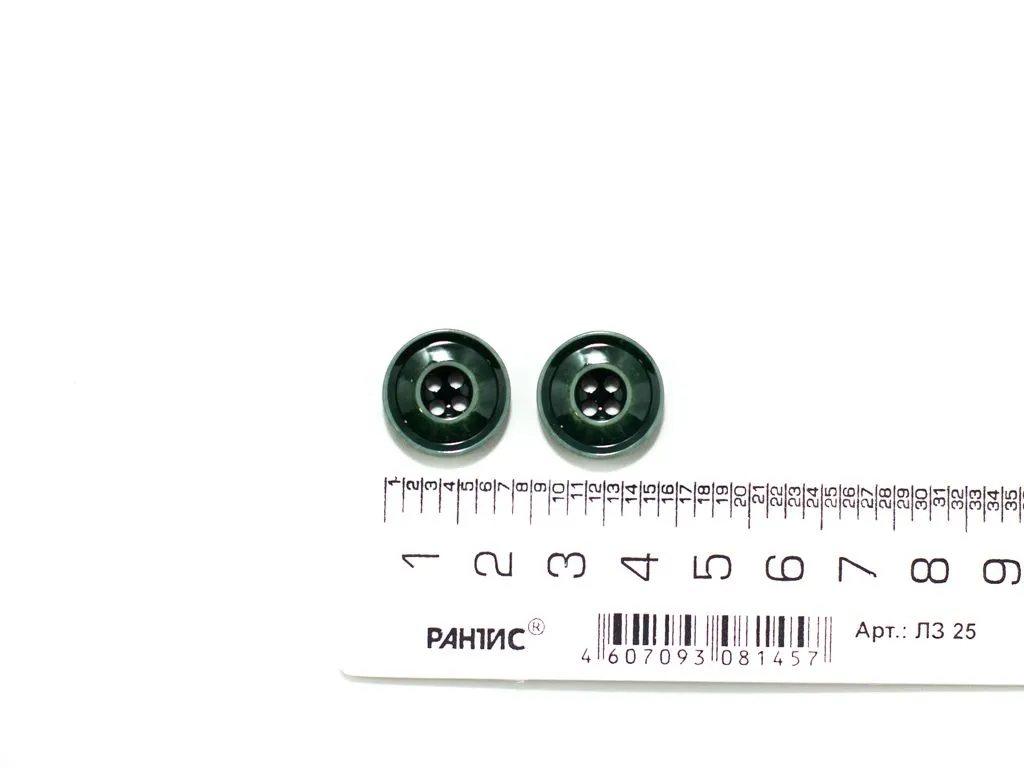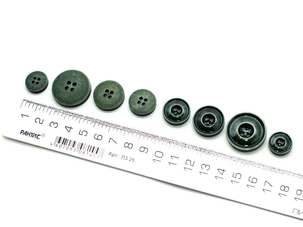 Пуговица пластмассовая, костюмная, 4 прокола, с глянцем, цвет зелёный джинсовый, диаметр 18 мм