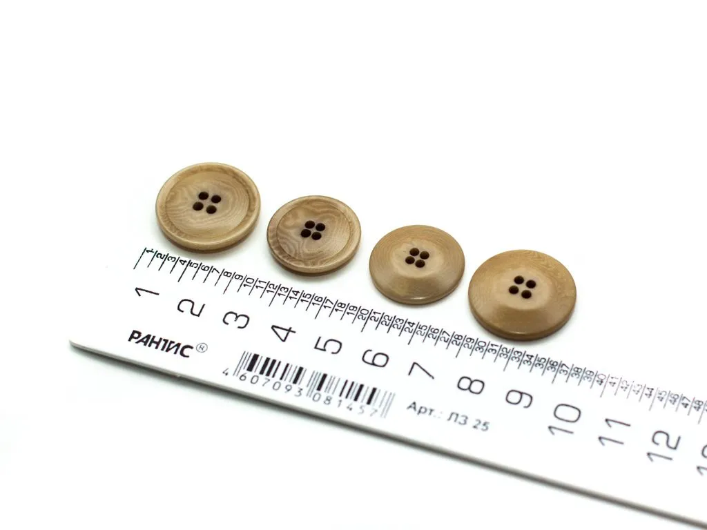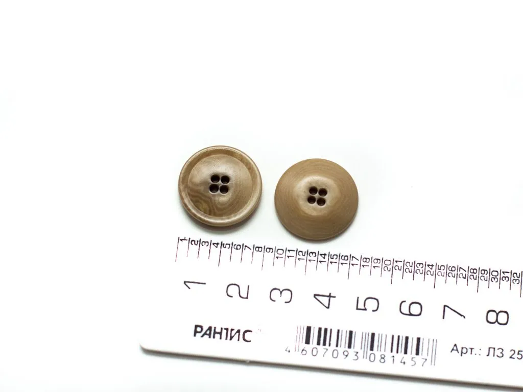 Пуговица пластмассовая, костюмная, 4 прокола, серая, под дерево, диаметр 20 мм