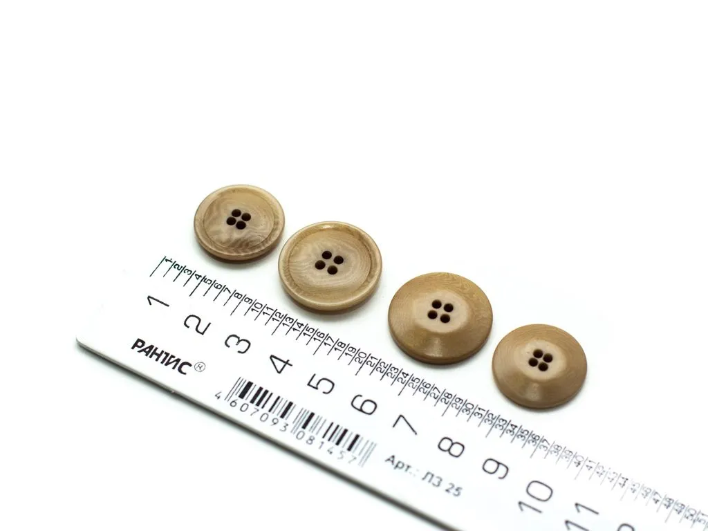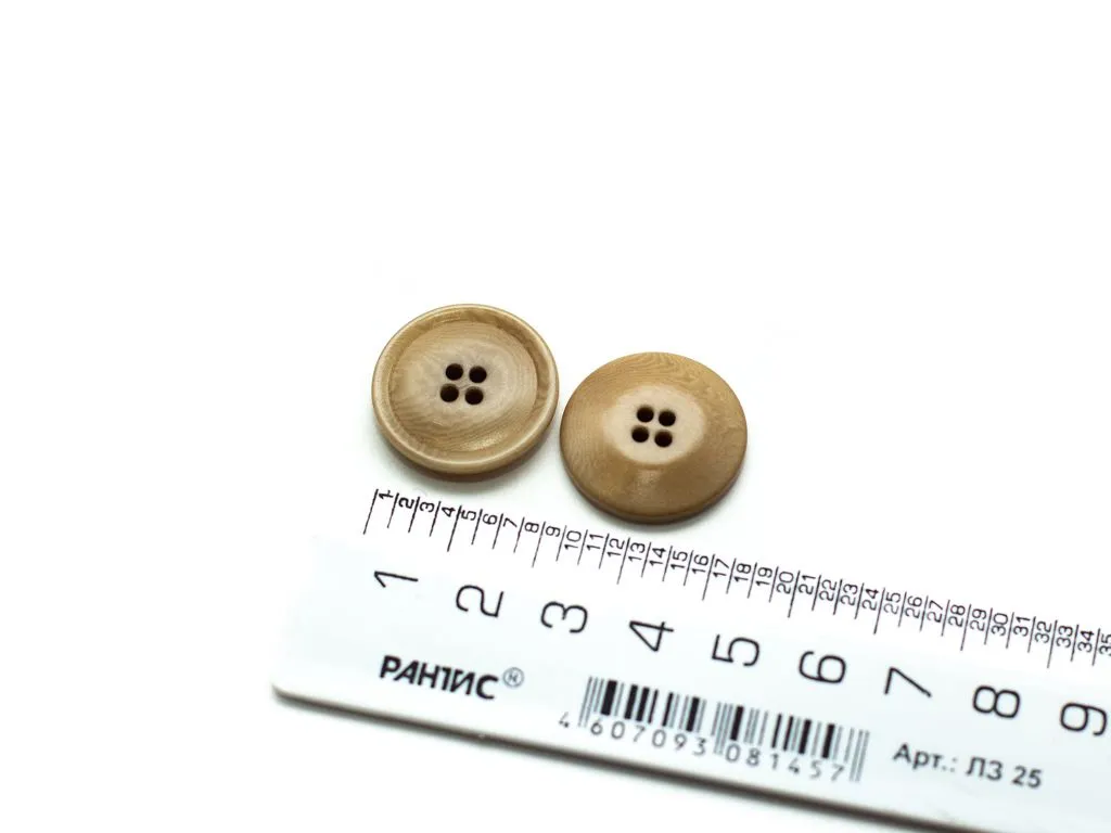 Пуговица пластмассовая, костюмная, 4 прокола, серая, под дерево, диаметр 22 мм