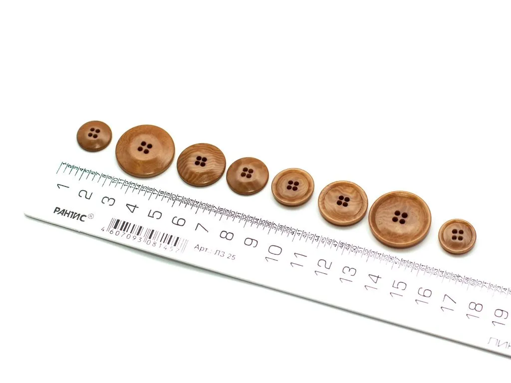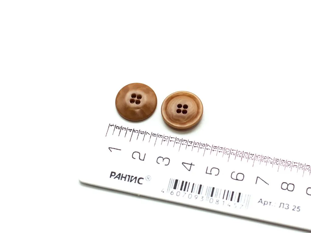 Пуговица пластмассовая, костюмная, 4 прокола, светло-коричневая, диаметр 17 мм