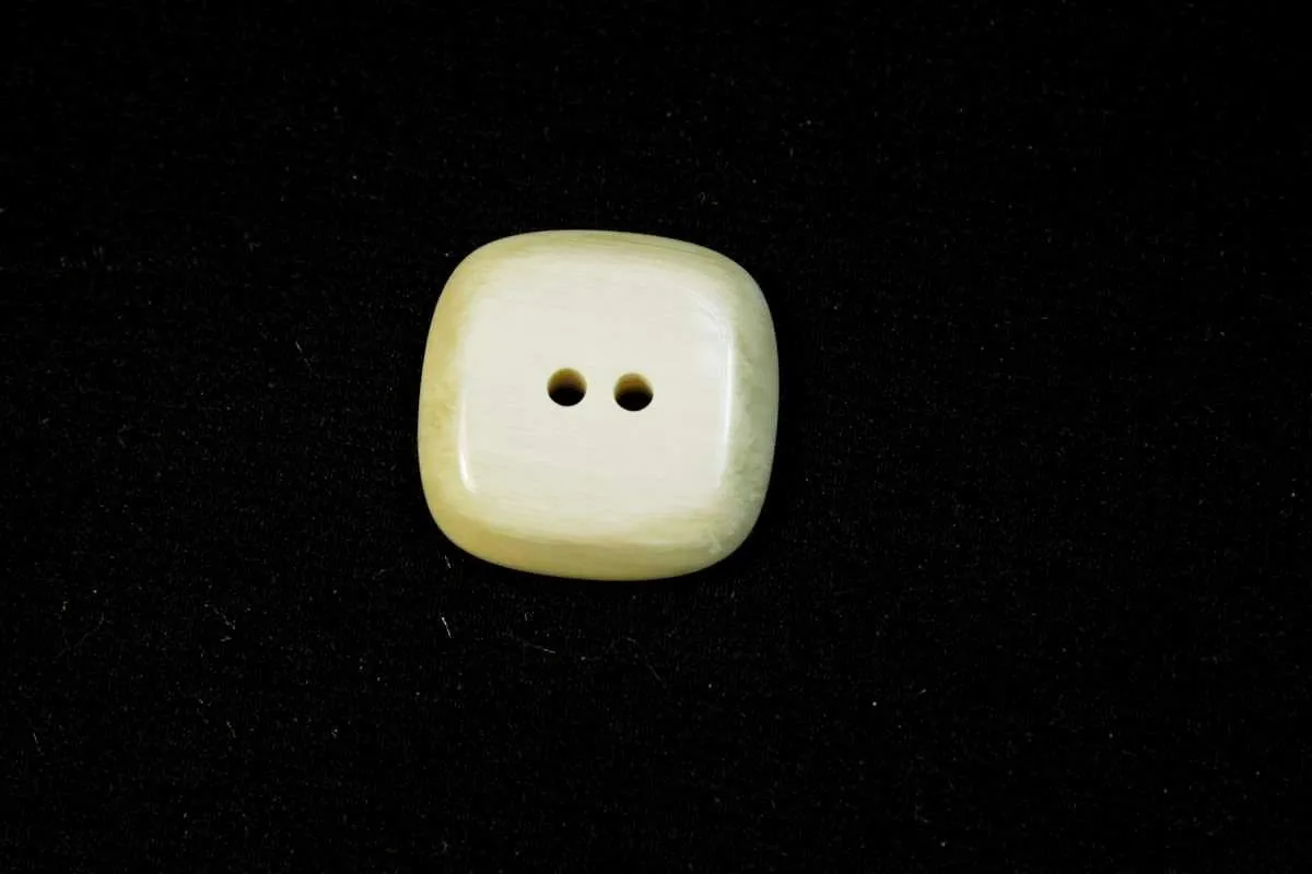 Пуговица пластмассовая, квадратная, два прокола, бежевый меланж, диаметр 19 мм