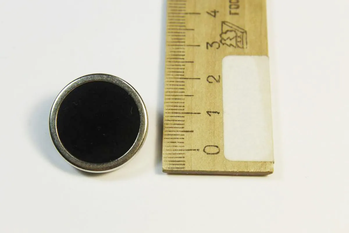 Пуговица пластмассовая на ножке, черного цвета с серебряным ободком, диаметр 23 мм