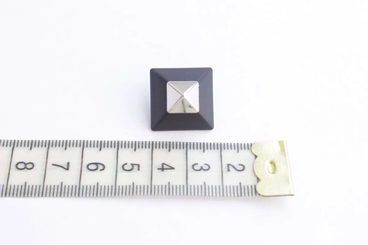 Пуговица пластмассовая, на ножке, "Пирамида" малая, чёрный/никель, диаметр 25 мм