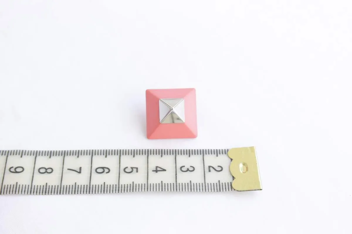 Пуговица пластмассовая, на ножке, "Пирамида" малая, коралл/никель, диаметр 25 мм