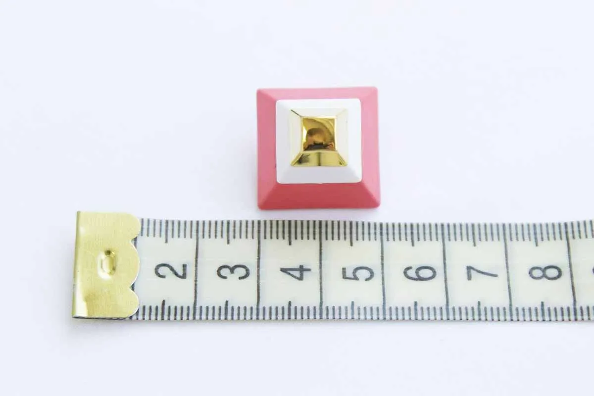 Пуговица пластмассовая, на ножке, "Пирамида", триколор коралл/белый/золотой, диаметр 28 мм