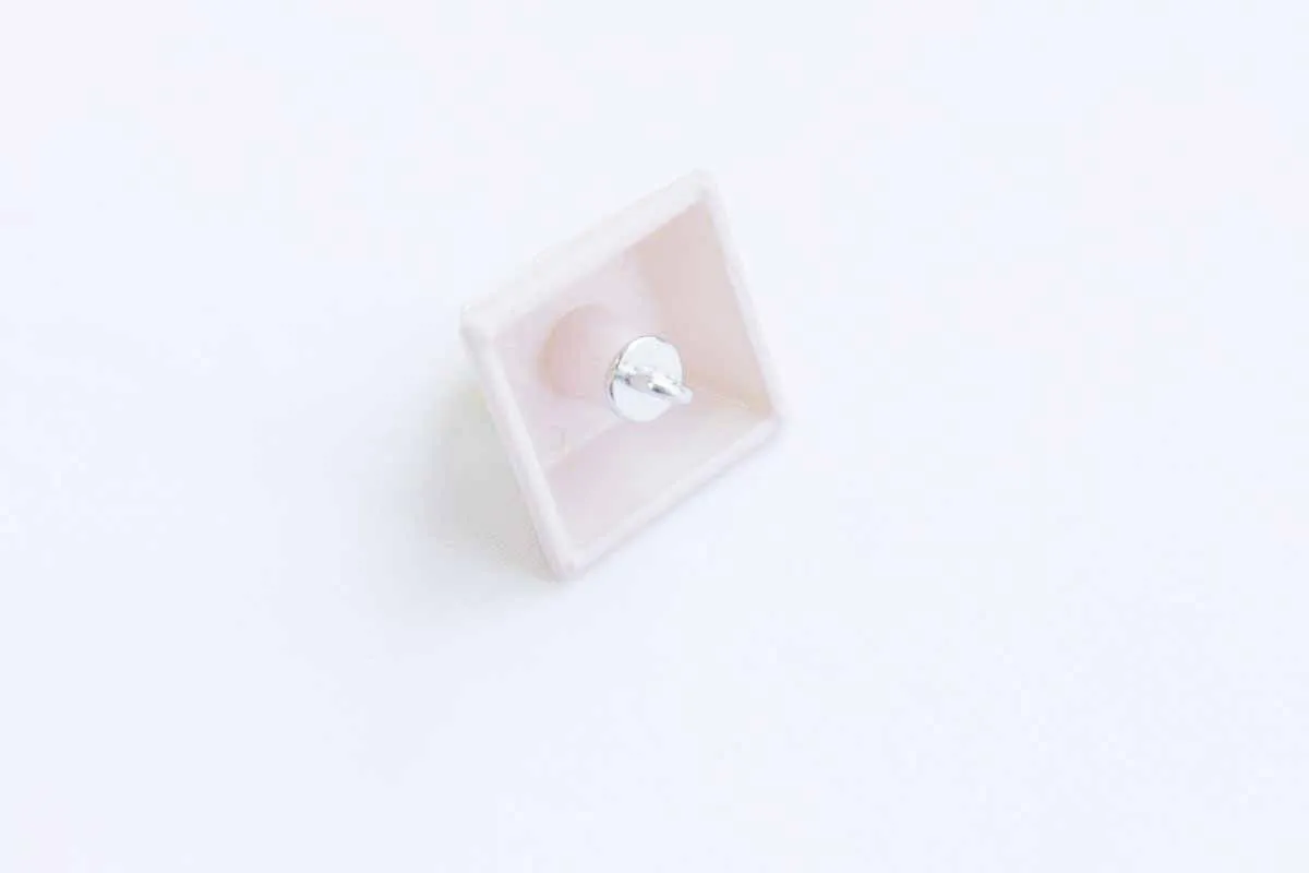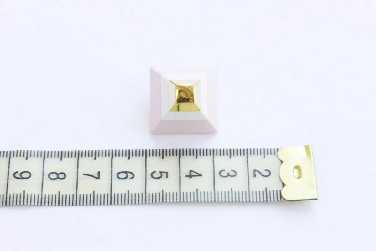 Пуговица пластмассовая, на ножке, "Пирамида", триколор розовый/белый/золотой, диаметр 28 мм