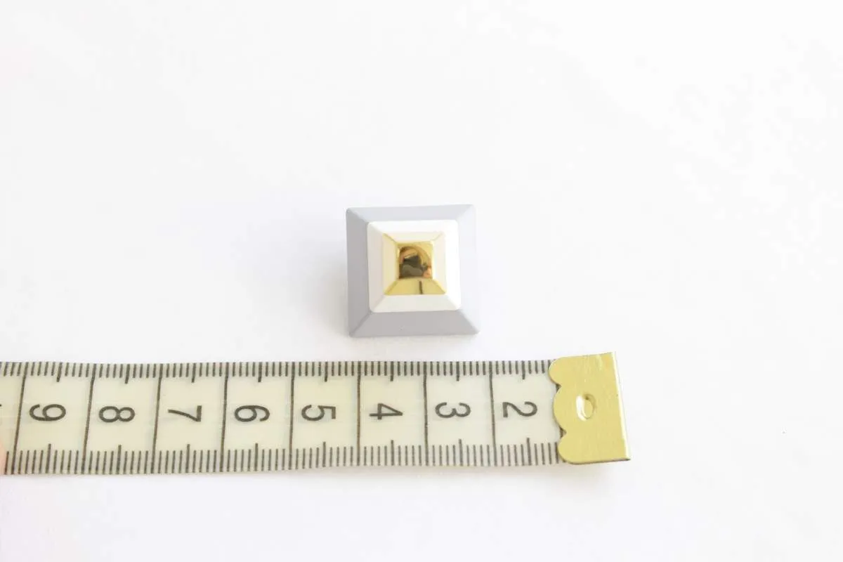 Пуговица пластмассовая, на ножке, "Пирамида", триколор серый/белый/золотой, диаметр 28 мм