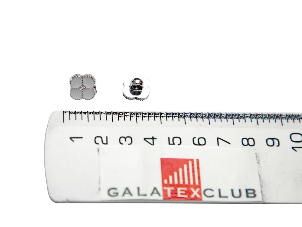 Пуговица пластмассовая, на ножке, "ЦВЕТОК", белая эмаль/серебро, диаметр 13 мм