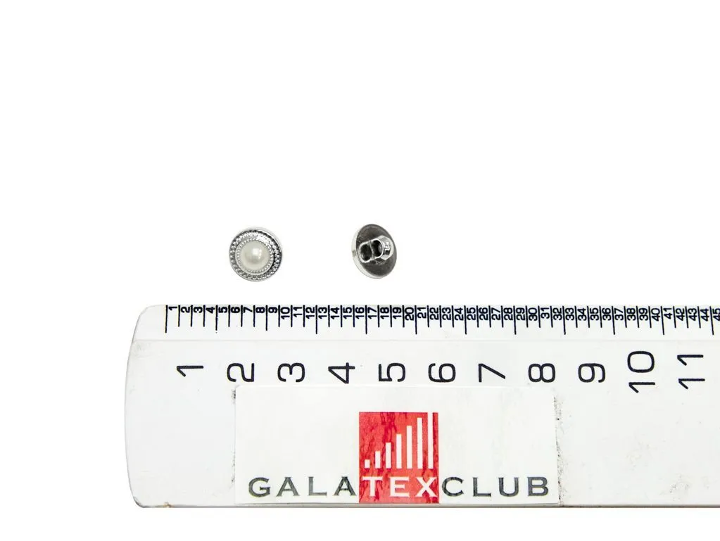 Пуговица пластмассовая, на ножке, жемчуг в серебре, диаметр 11 мм