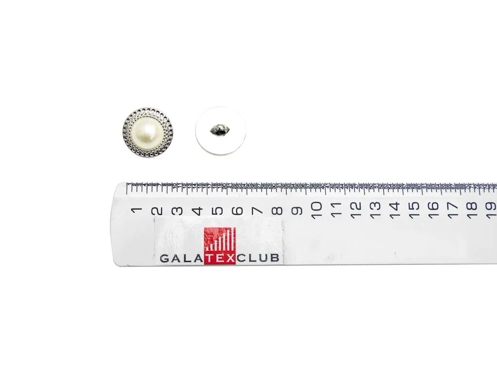Пуговица пластмассовая, на ножке, жемчуг в серебре, диаметр 25 мм