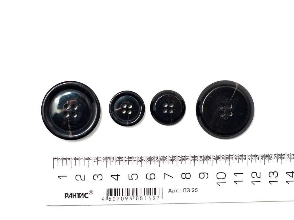 Пуговица пластмассовая, пальтовая, 4 прокола, чёрная, диаметр 20 мм