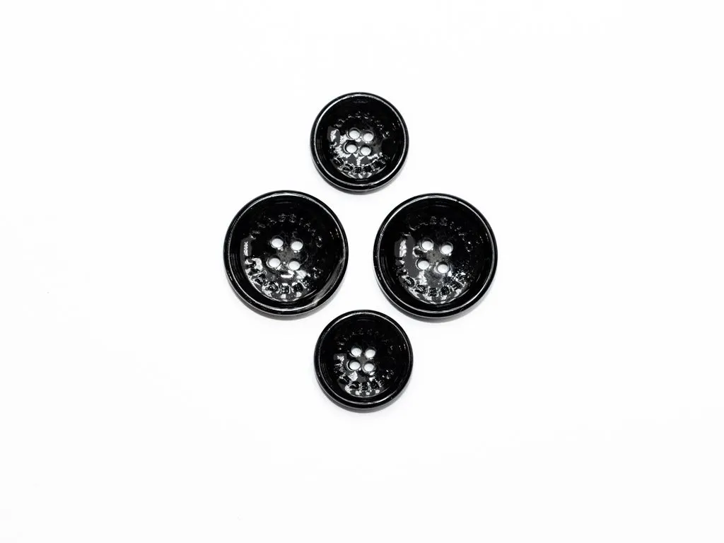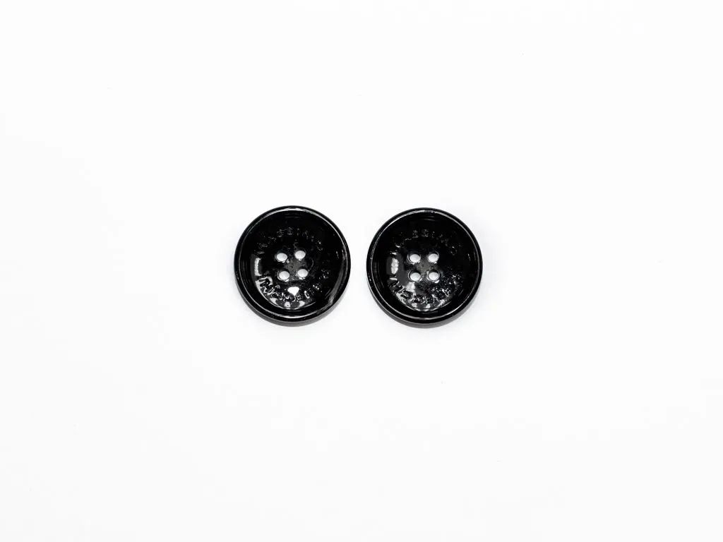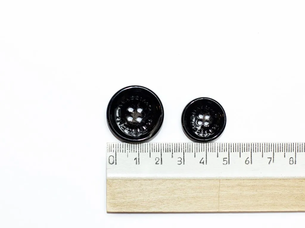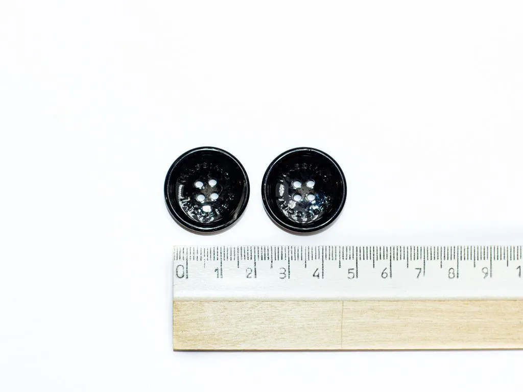 Пуговица пластмассовая, пальтовая, 4 прокола, чёрная с бежевым, диаметр 25 мм