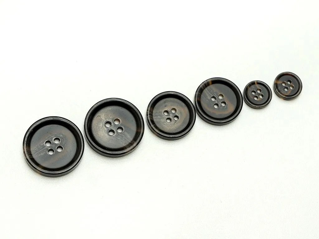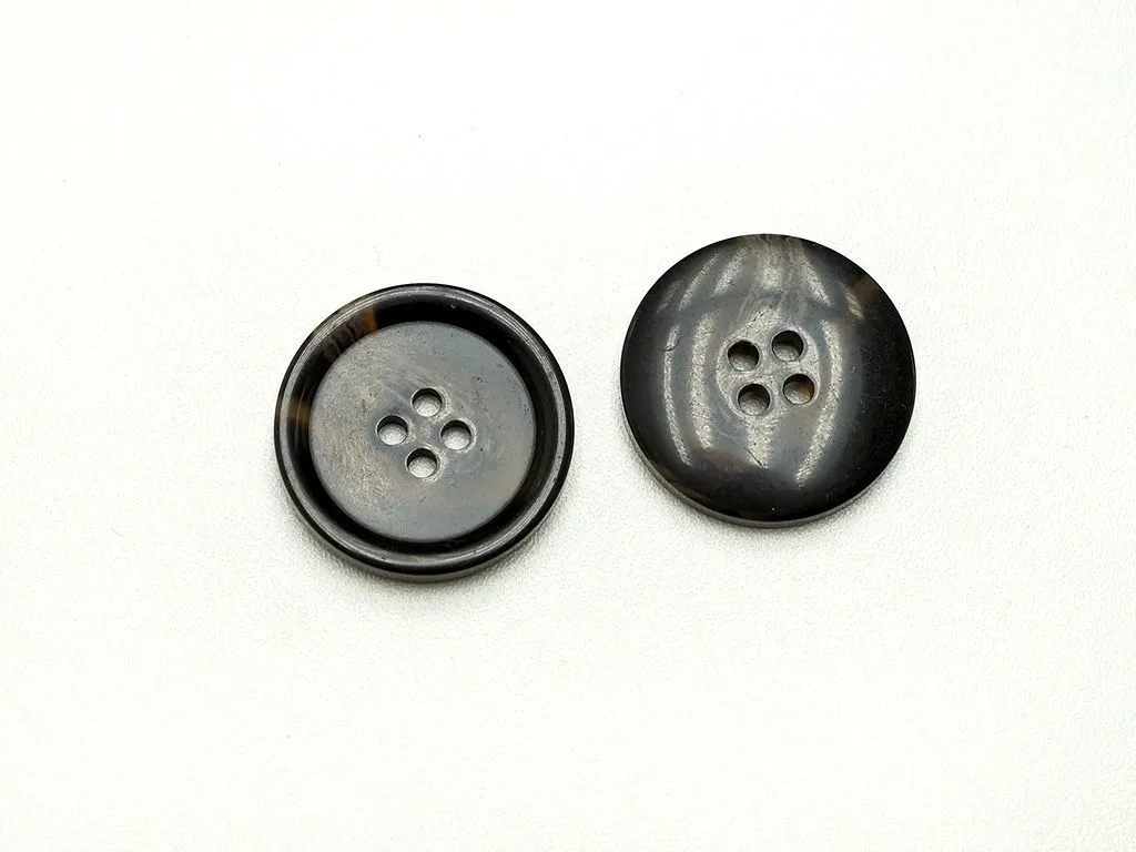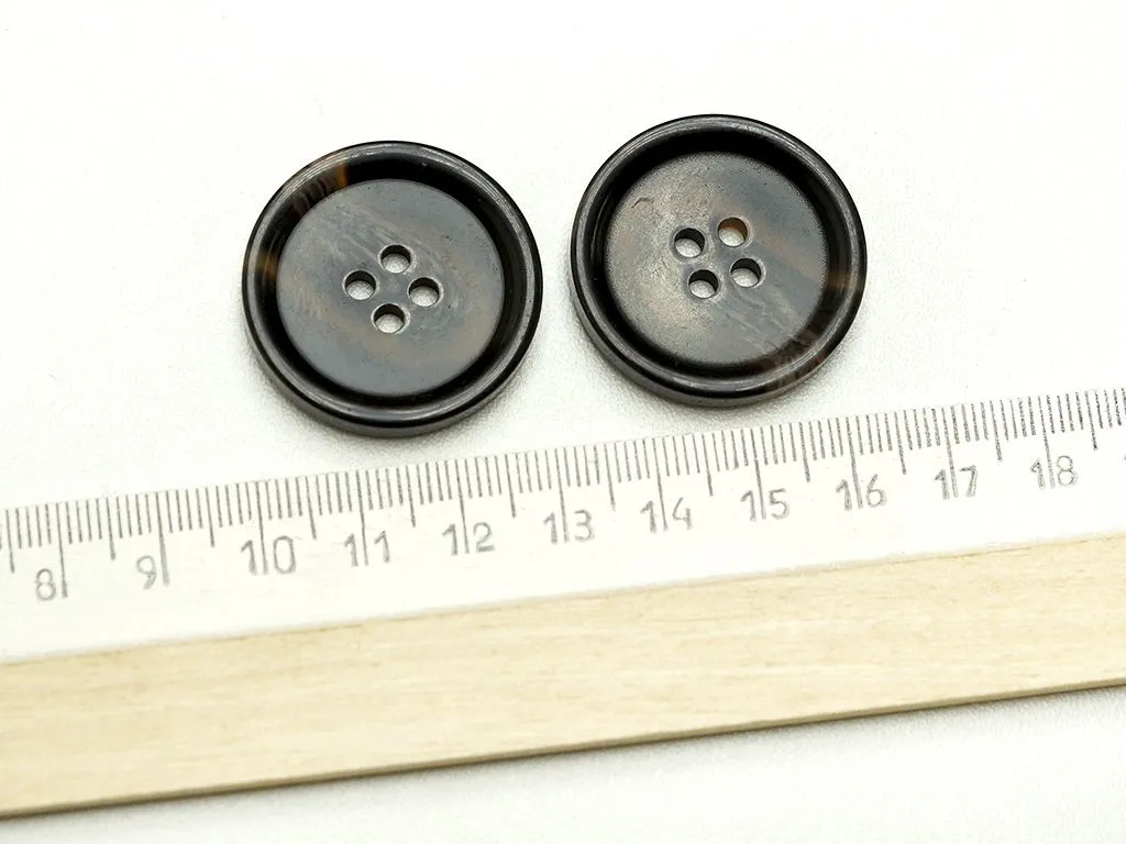 Пуговица пластмассовая, пальтовая, 4 прокола, тёмно-коричневый рог, диаметр 30 мм