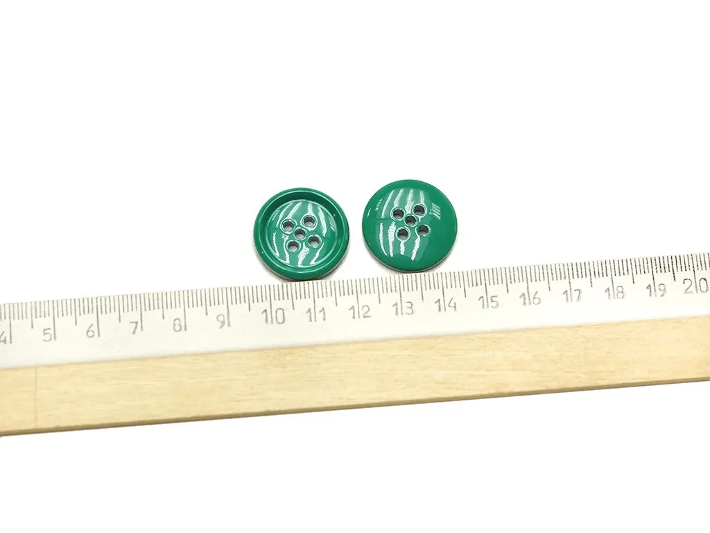Пуговица пластмассовая, пять проколов, малахитового цвета, глянцевая, диаметр 22 мм