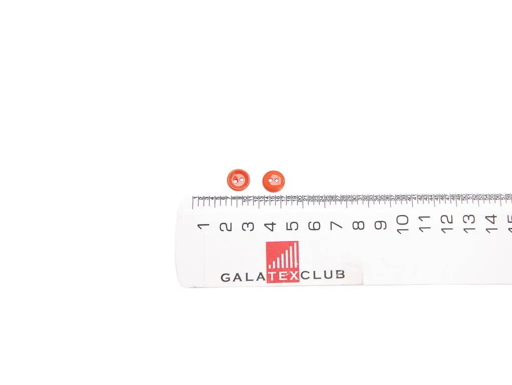 Пуговица пластмассовая рубашечная, 2 прокола, оранжевый глянец, диаметр 12 мм