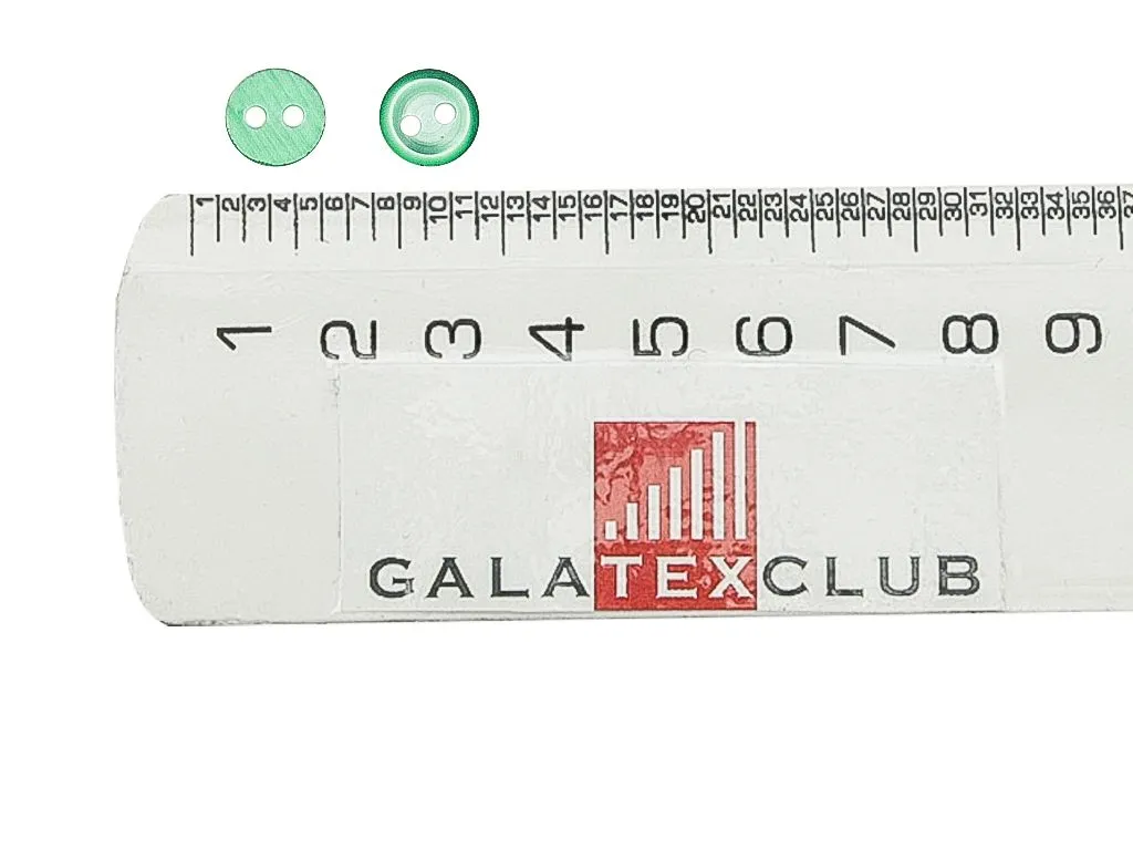 Пуговица пластмассовая рубашечная, 2 прокола, зелёный перламутр, диаметр 9 мм