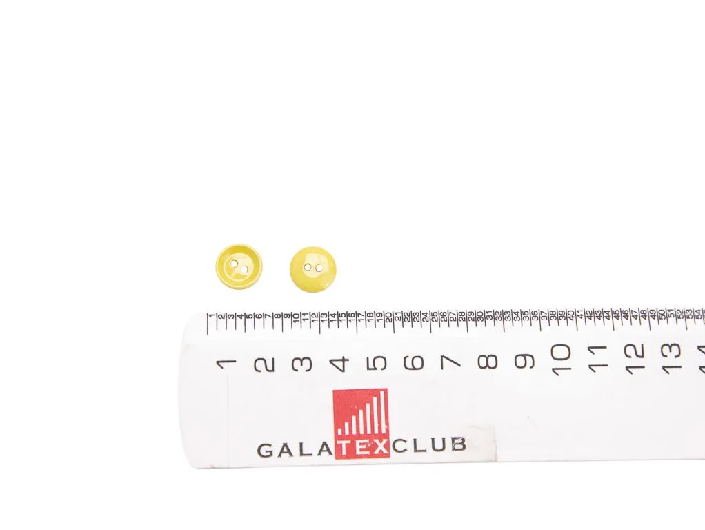 Пуговица пластмассовая рубашечная, 2 прокола, жёлтый глянец, диаметр 12 мм
