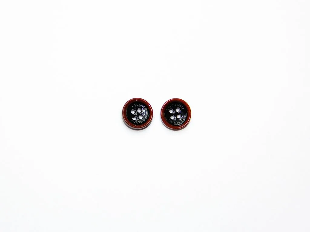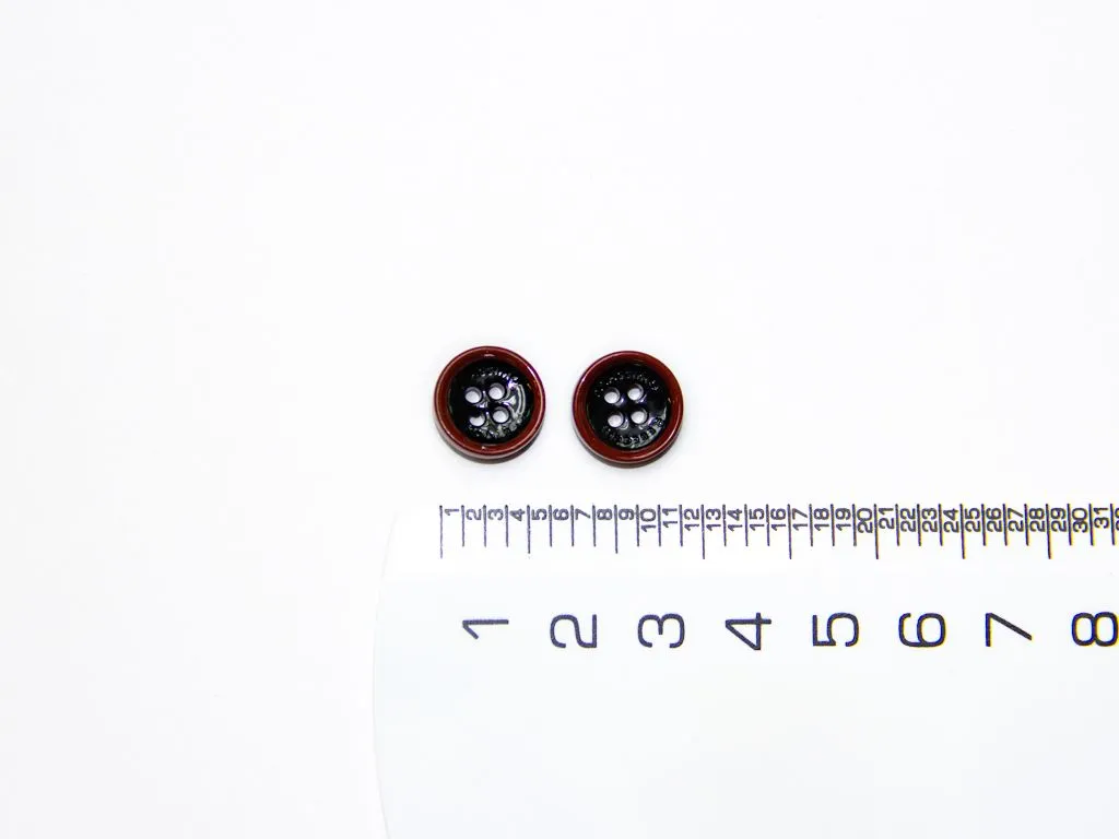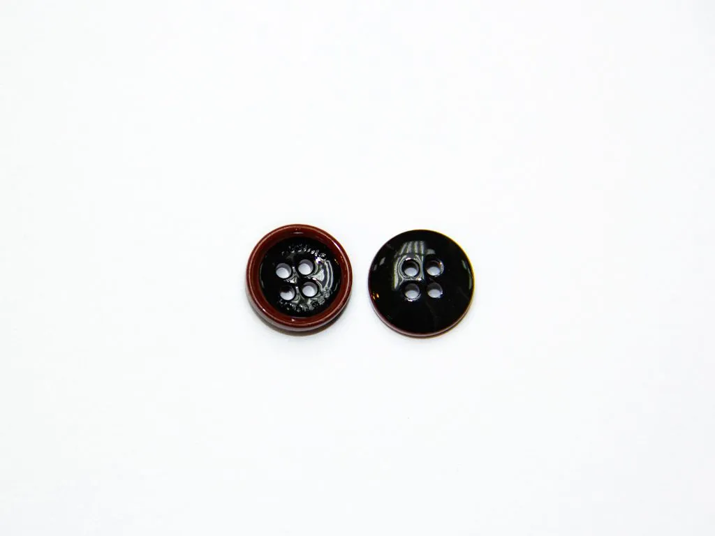 Пуговица пластмассовая, рубашечная, 4 прокола, чёрный/терракот, диаметр 13 мм