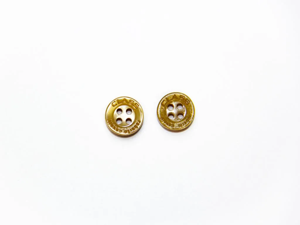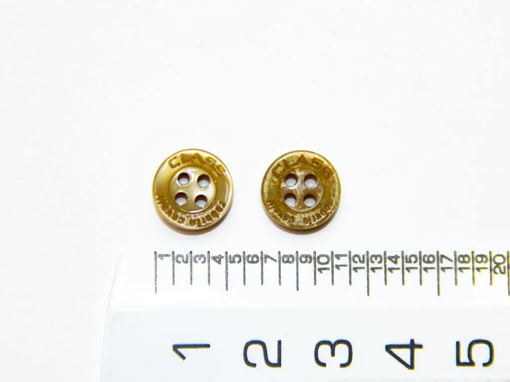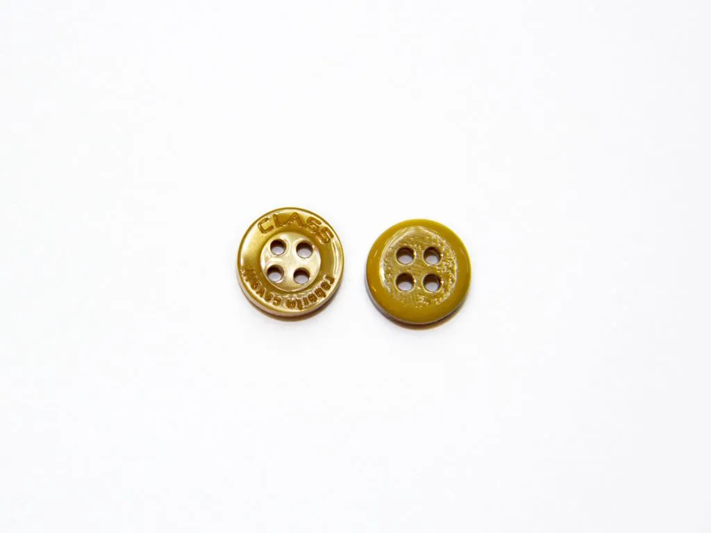 Пуговица пластмассовая, рубашечная, 4 прокола, горчичного цвета, перламутровая, диаметр 12 мм