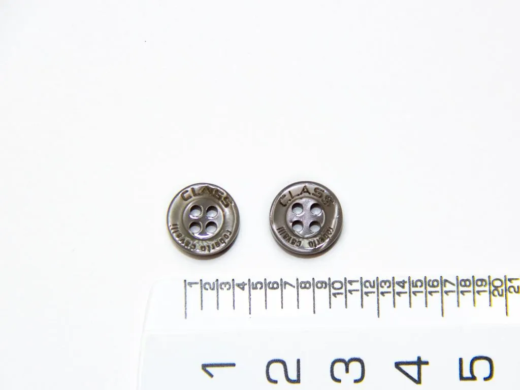 Пуговица пластмассовая, рубашечная, 4 прокола, серого цвета, перламутровая, диаметр 12 мм