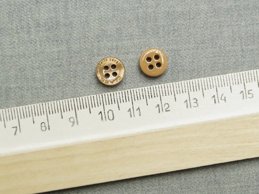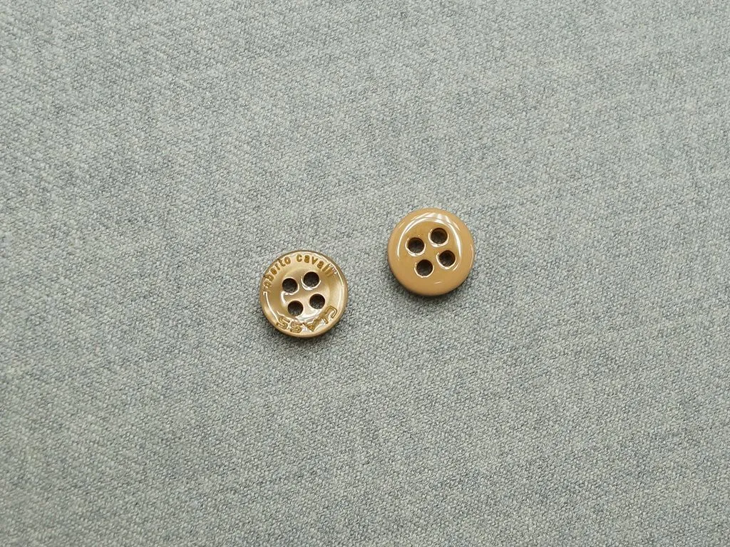 Пуговица пластмассовая, рубашечная, 4 прокола, тёмно-бежевого цвета, перламутровая, диаметр 10 мм