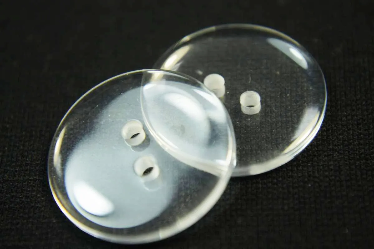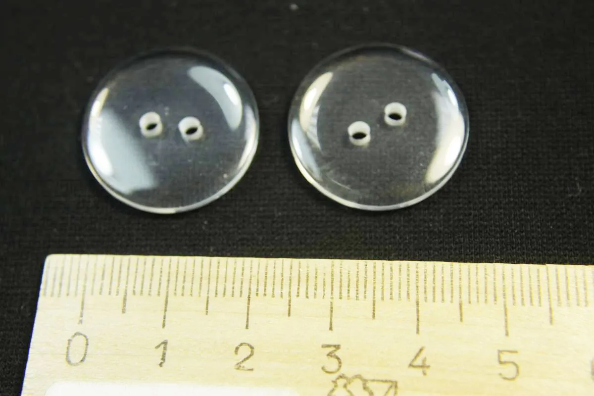 Пуговица пластмассовая супатная два прокола прозрачного цвета диаметр 23 мм