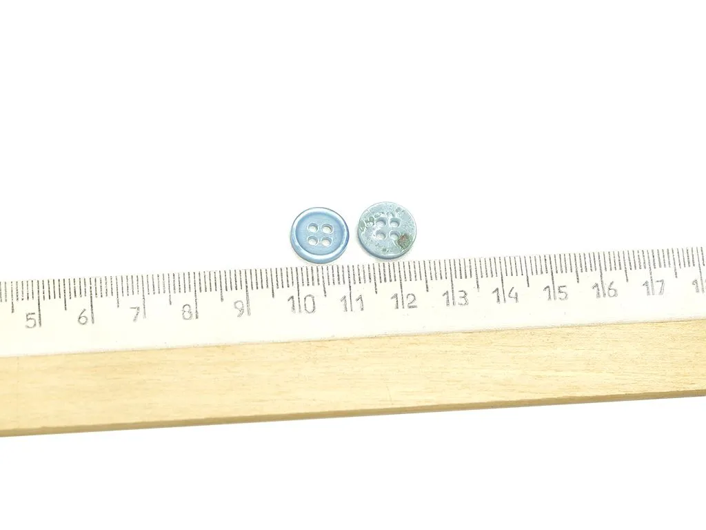 Пуговица рубашечная, пластик, 4 прокола, голубой перламутр, под ракушку, диаметр 11 мм
