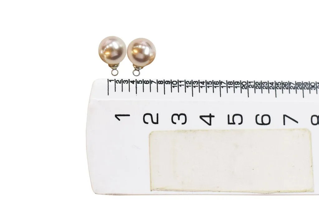 Пуговица с жемчугом бежевого цвета, на ножке серебряного цвета, диаметр 11 мм