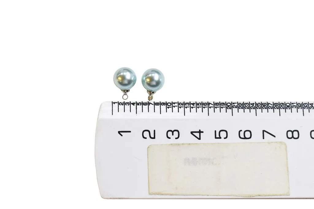 Пуговица с жемчугом голубого цвета, на ножке серебряного цвета, диаметр 11 мм