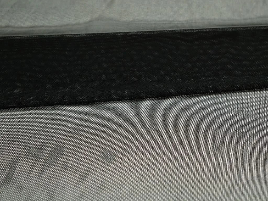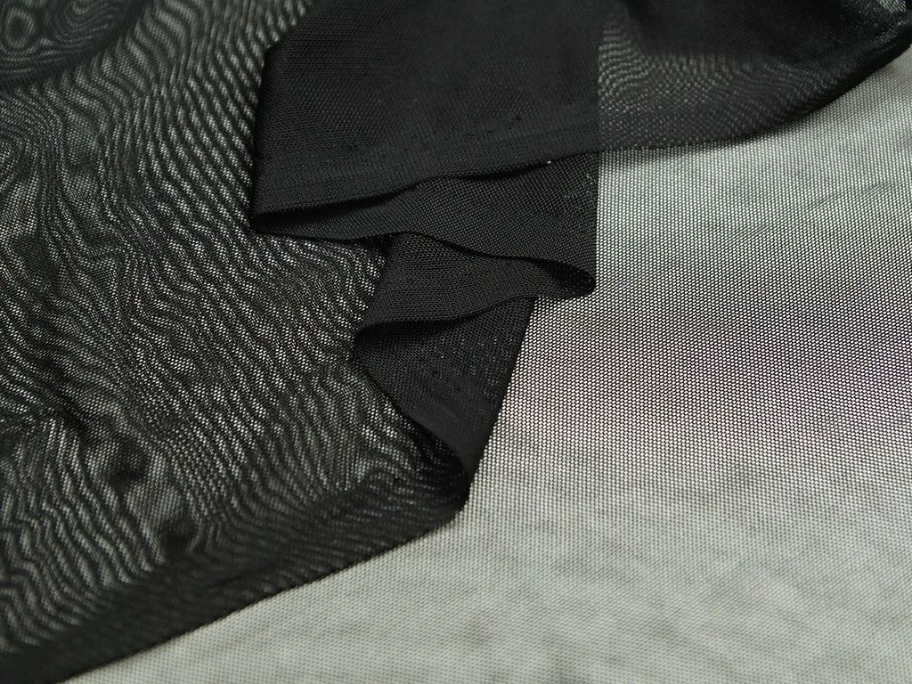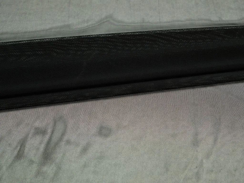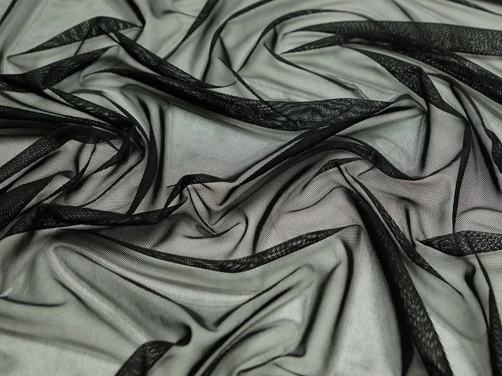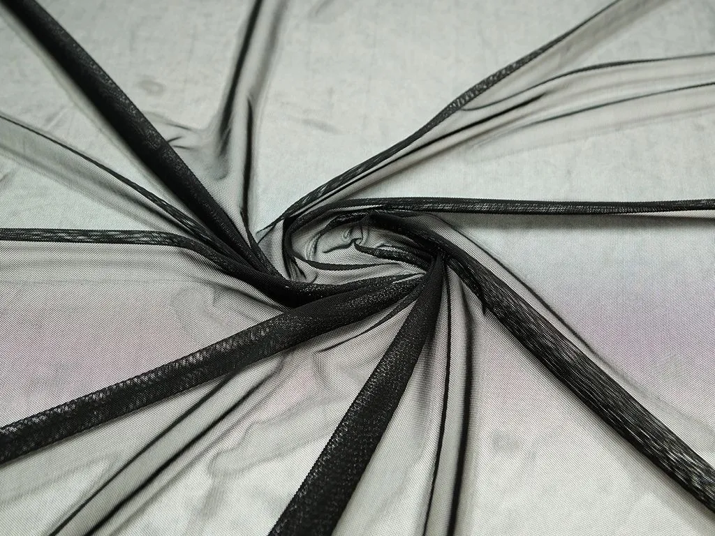 Мягкая и эластичная сетчатая ткань черного цвета с очень мелкими ячейками. Материал полупрозрачный, мягкий, при растяжении возвращается в исходную форму. Его используют для отделки женской одежды: юбок, платьев, туник, топов, купальников и футболок.