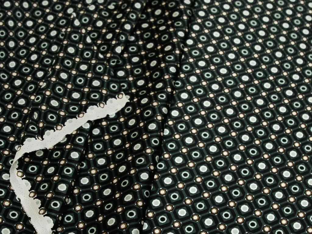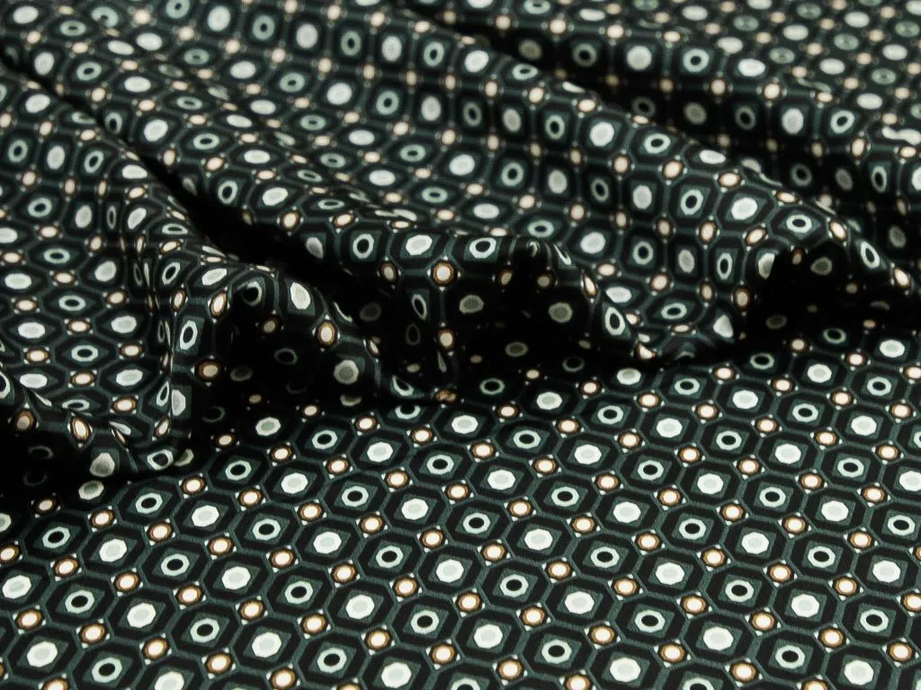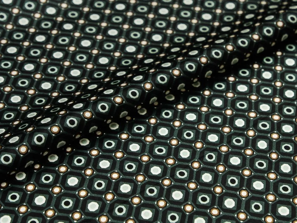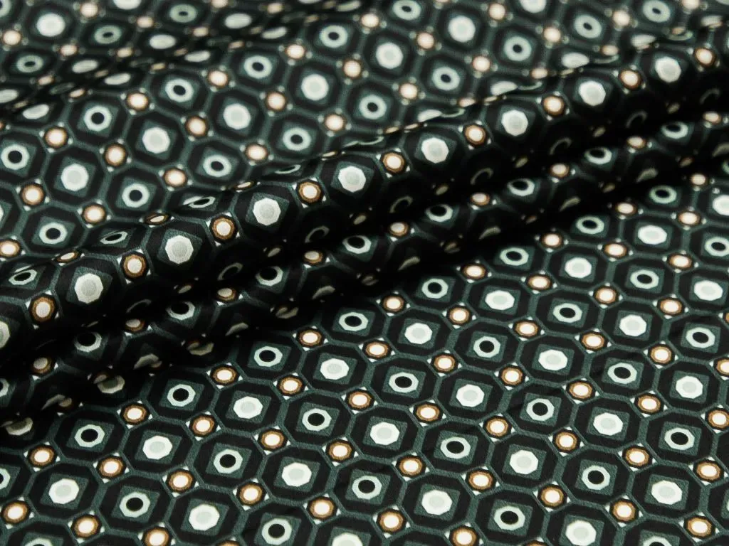 Блузочно-плательный шелк с орнаментом многоугольники, цвет изумрудный