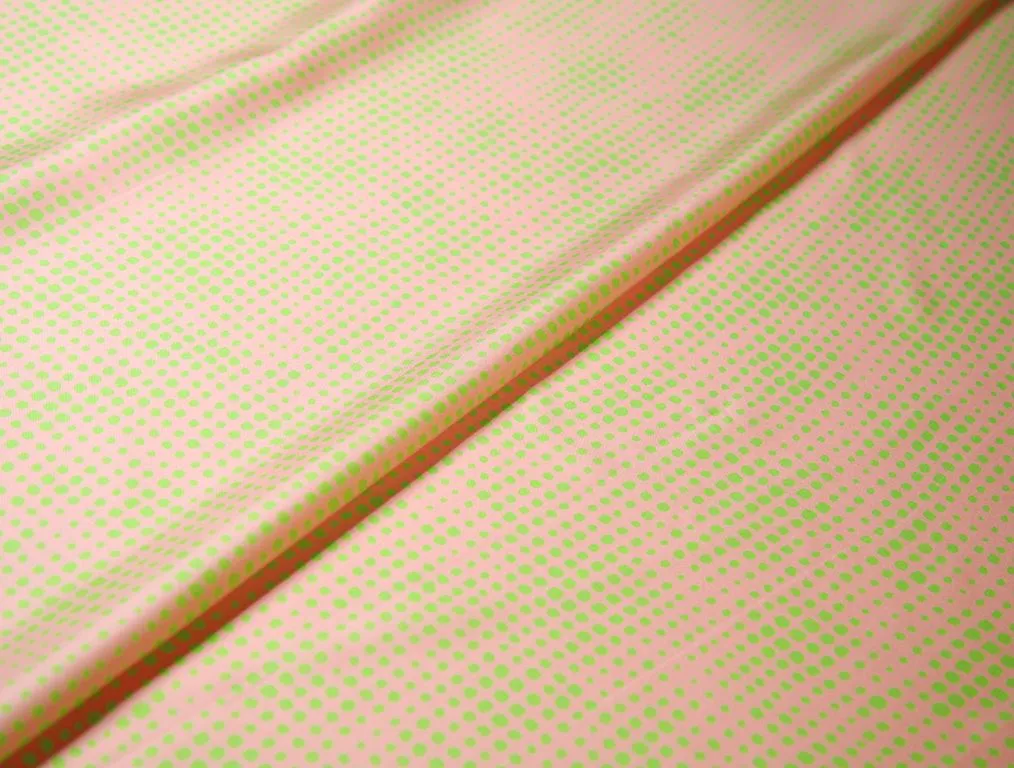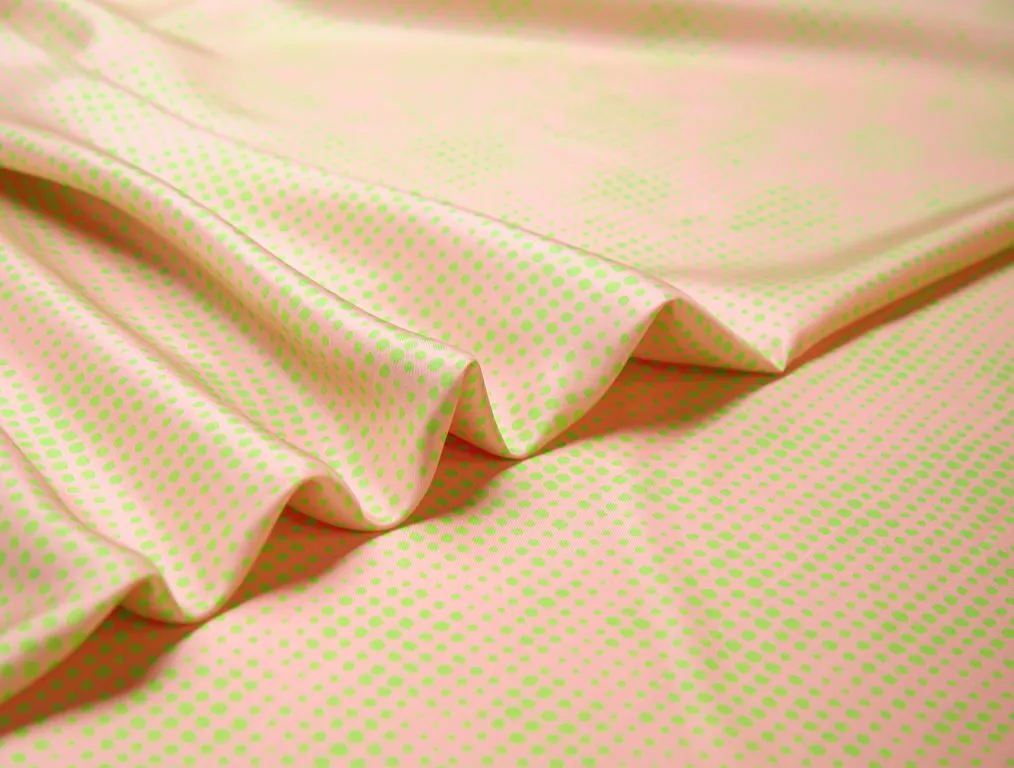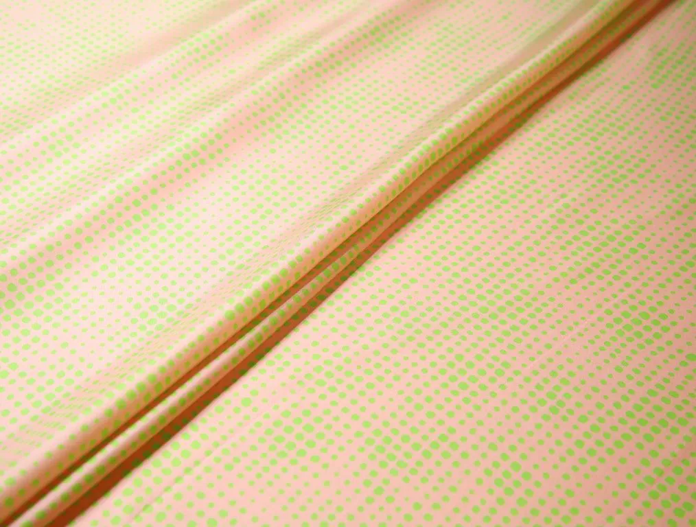 Блузочно-плательный шелк твил с геометрическим рисунком, цвет персиково-зеленый
