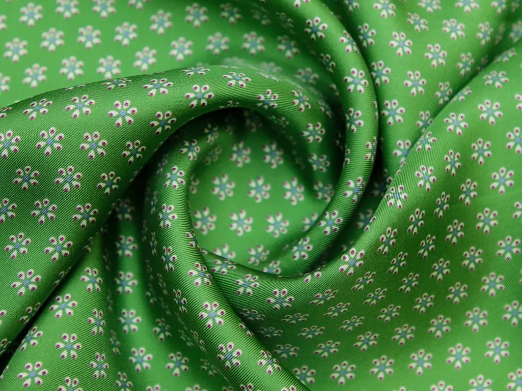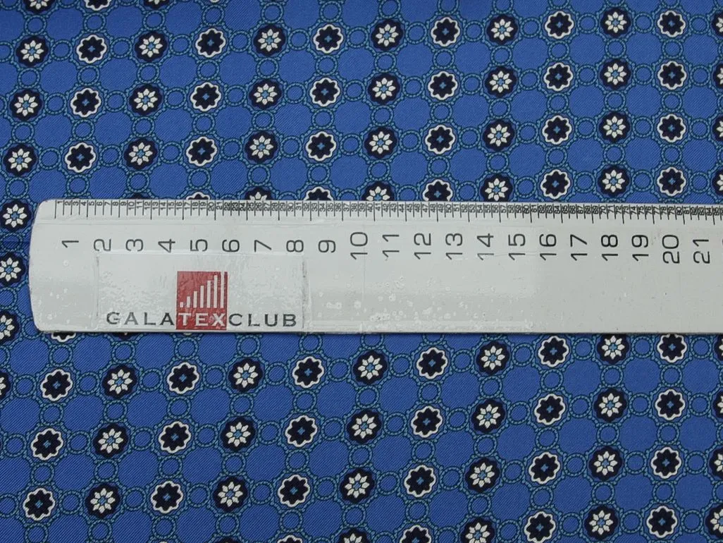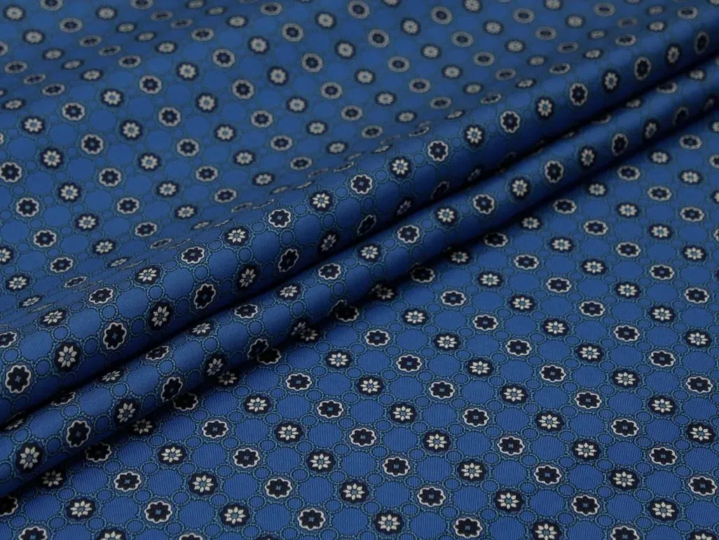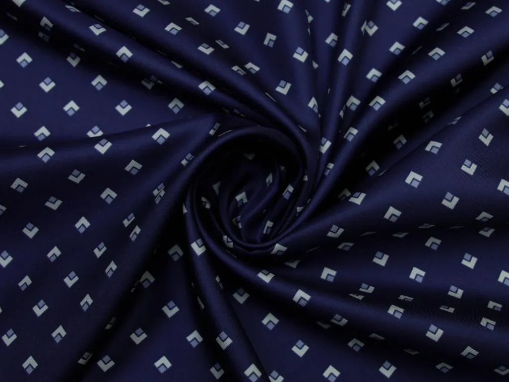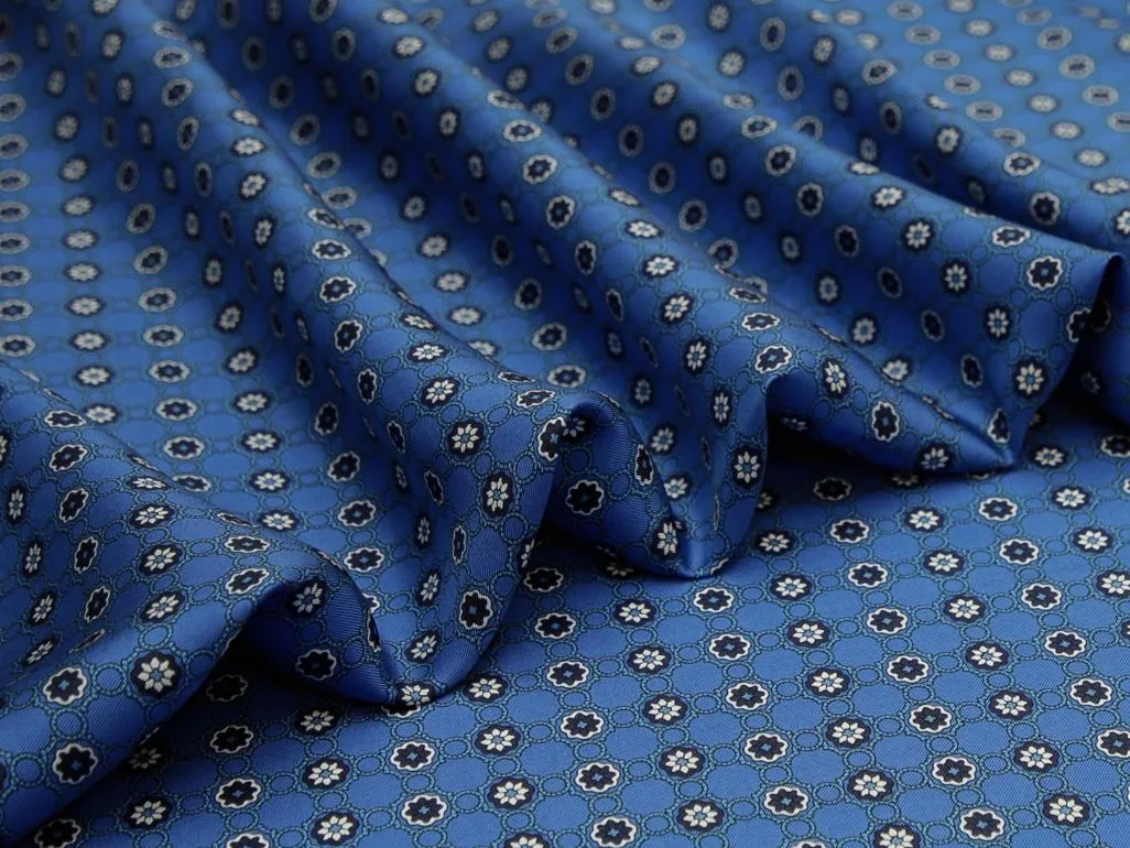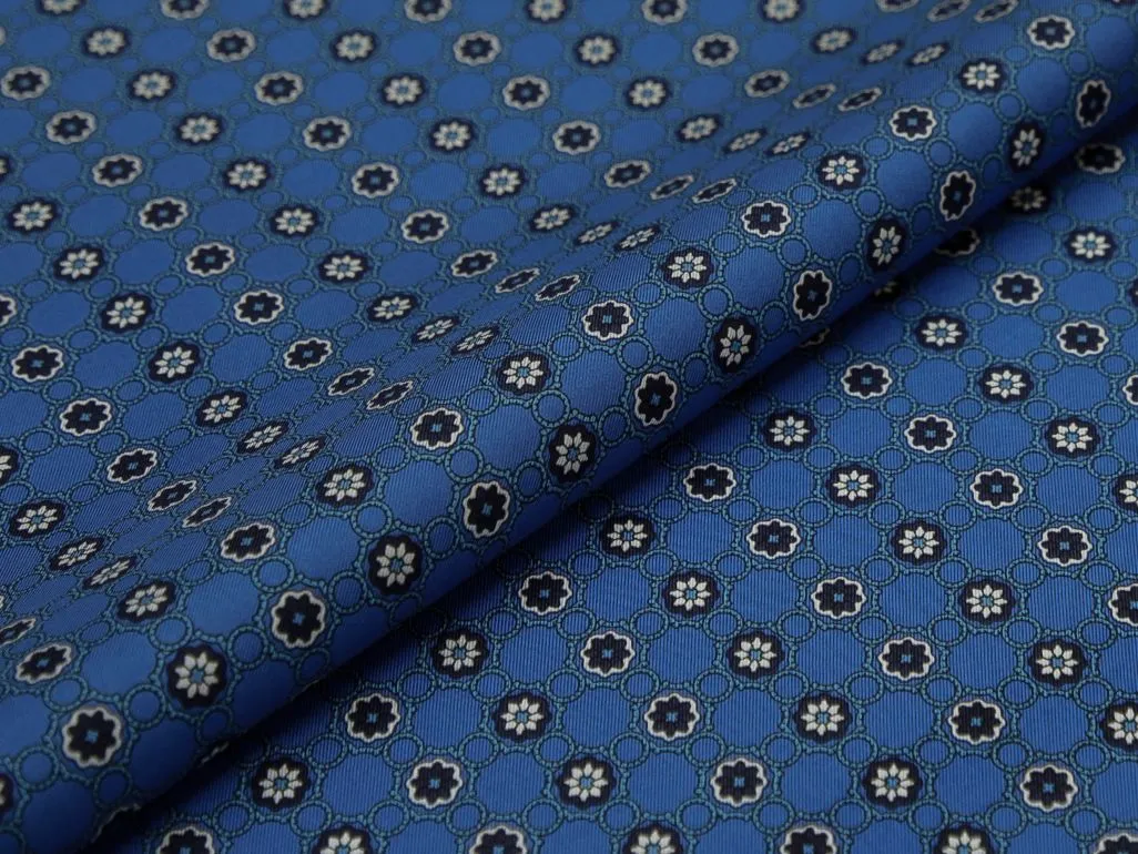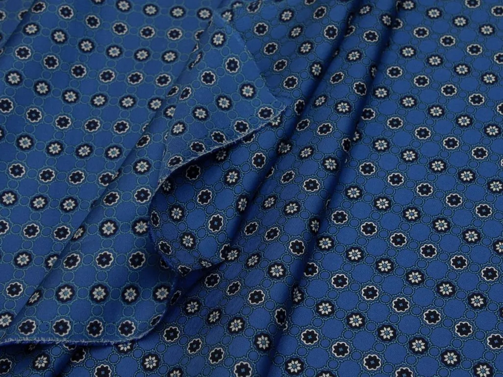 Блузочно-плательный шелк твил с мелкмим орнаментом на синем фоне
