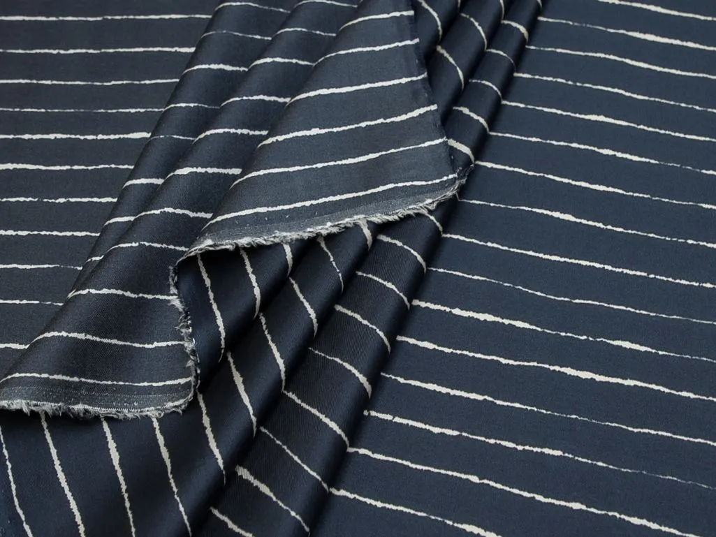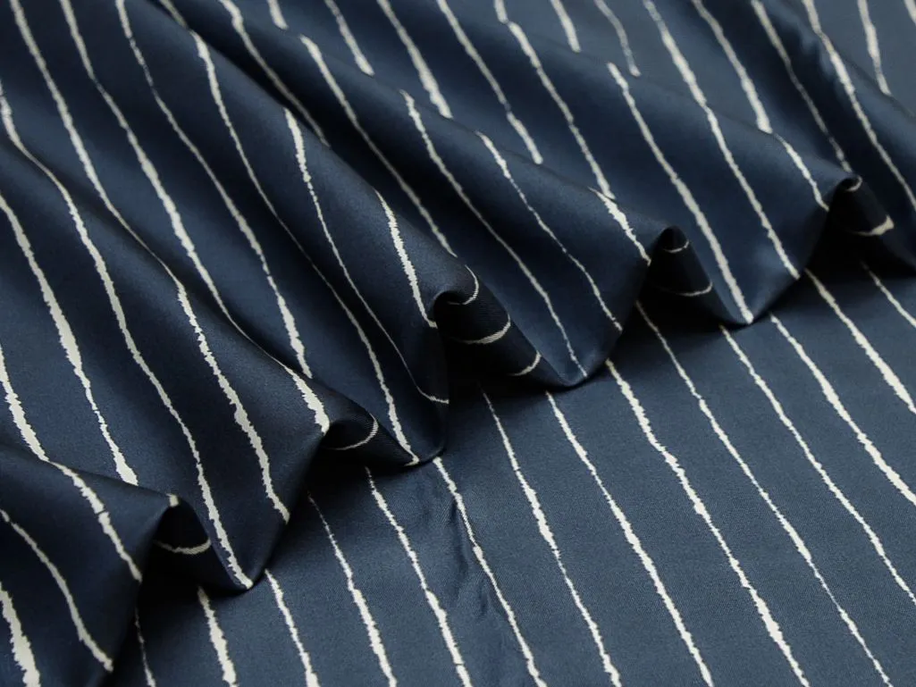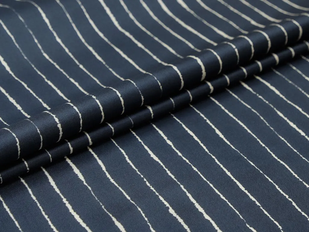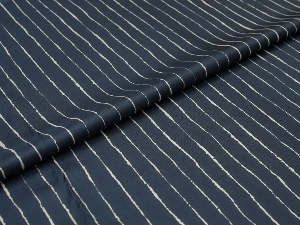 Блузочно-плательный шелк твил в полоску, цвет сине-белый