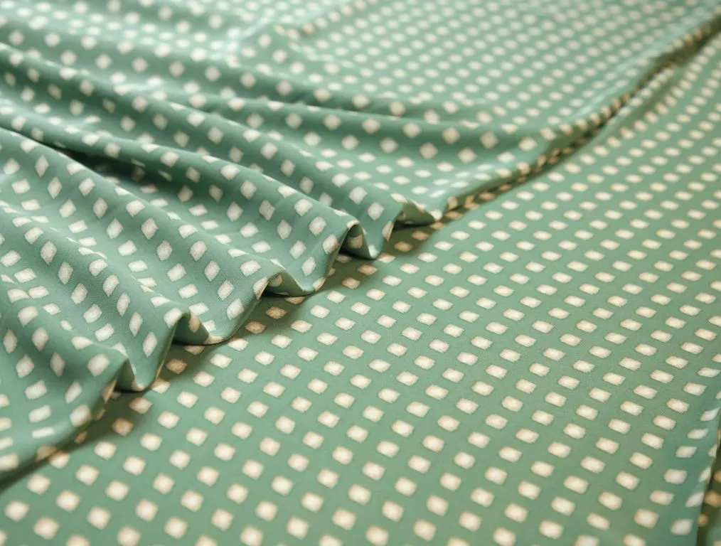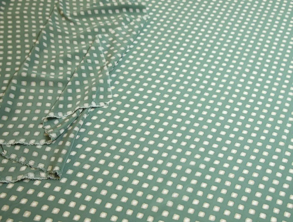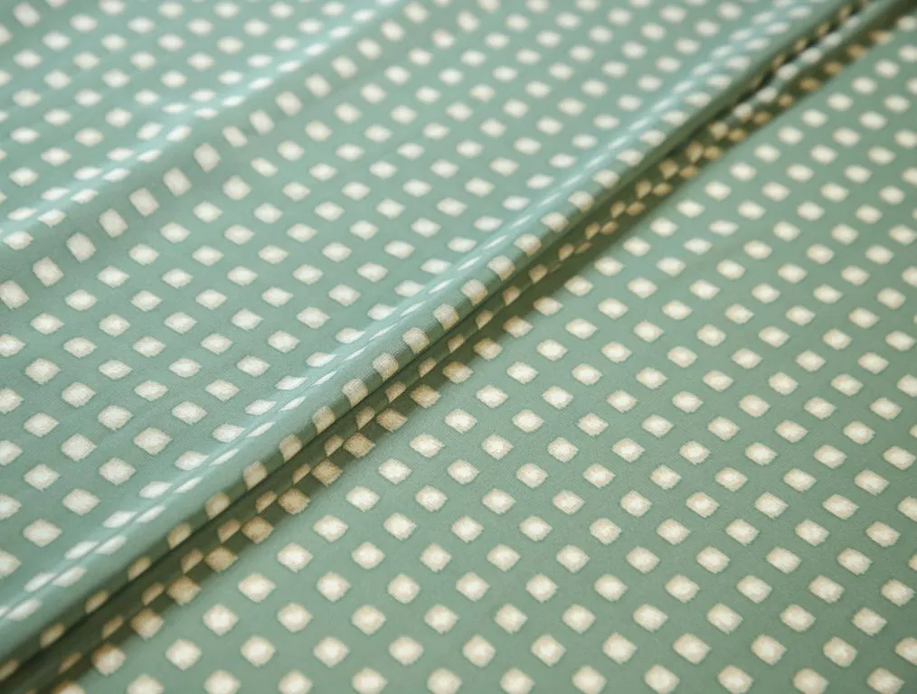 Блузочный шелк фисташкового цвета с геометрическим принтом