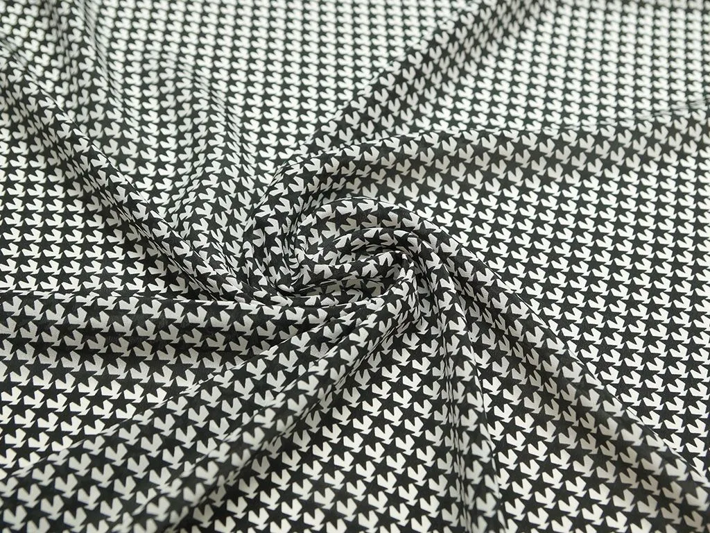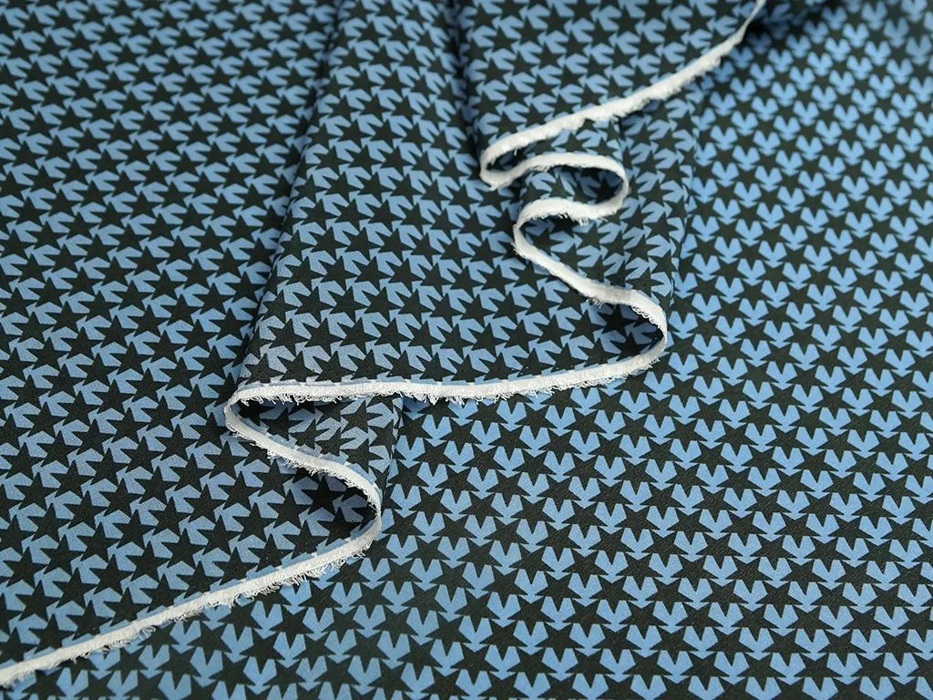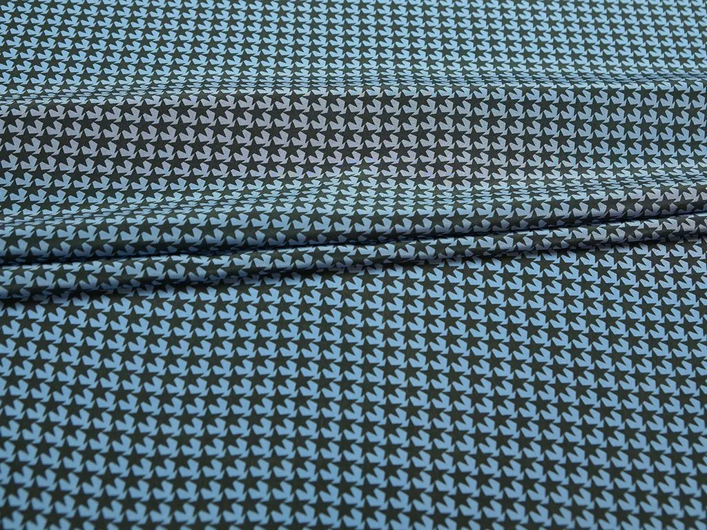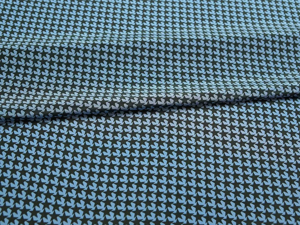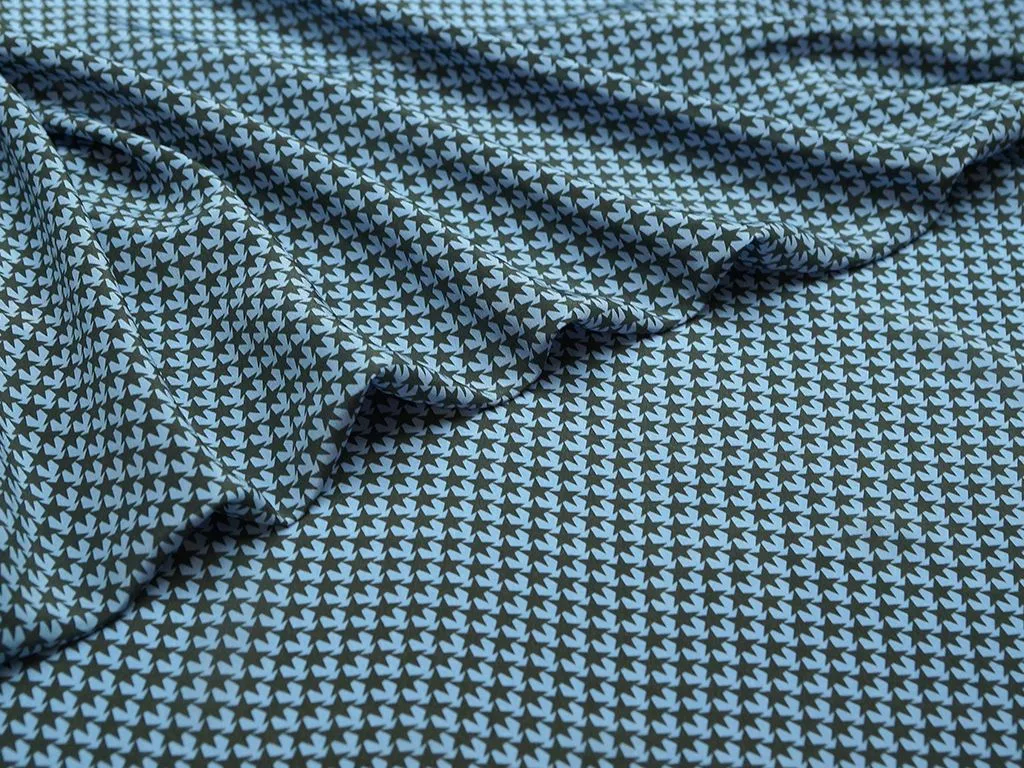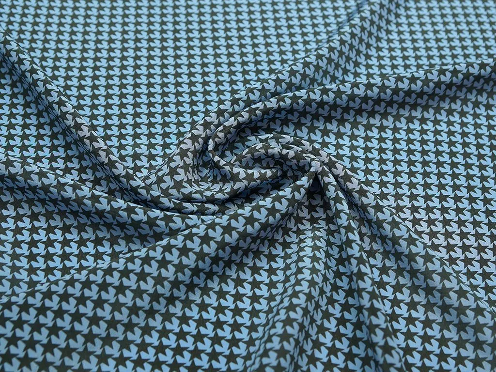 Блузочный шелк с рисунком "звезды" на синем фоне